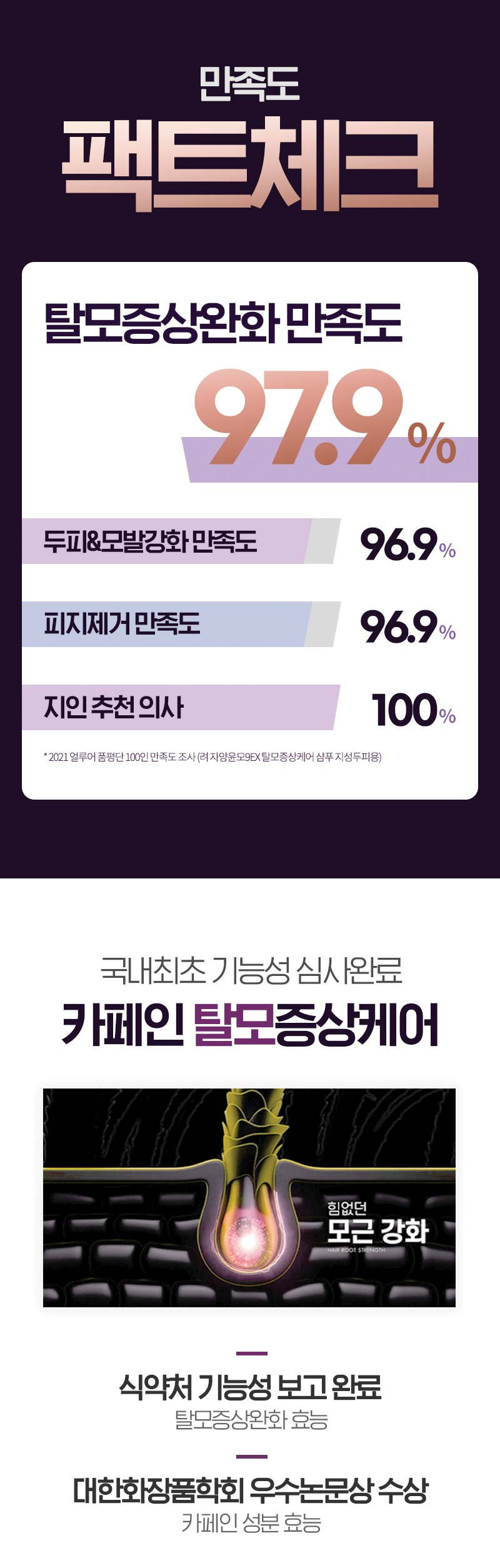 - The first in Korea to complete a functional evaluation, our shampoo is formulated with caffeine to manage hair loss symptoms efficiently.