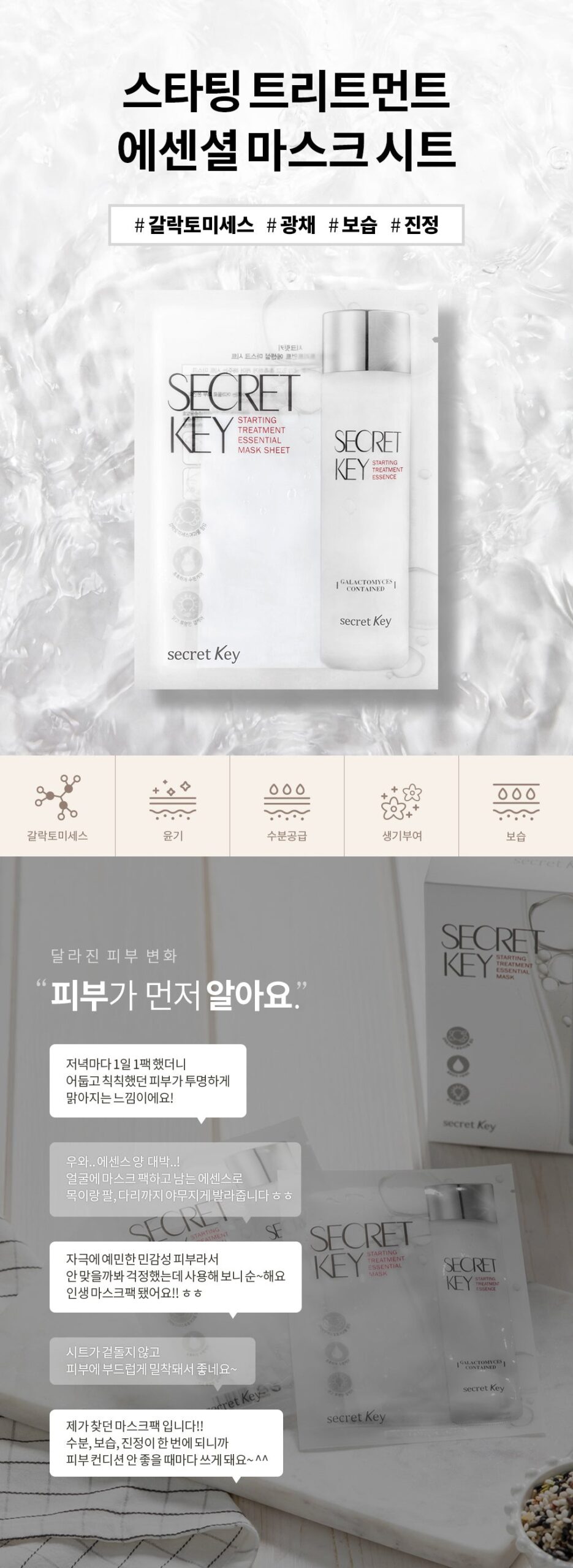Selama hidup saya, banyak masker yang telah memberikan klaim seakan akan dapat menyelamatkan kulitku. Namun SecretKey Starting Treatment Essential Sheet Mask benar-benar berhasil mewujudkannya. Pada setiap pengaplikasian, lapisan yang nyaman mulai mendinginkan pori-pori dan membawa kelembapan dalam prosesnya; aromanya itu menenangkan jiwa bagai jembatan dari kerisauan sehari-hari ke ketenangan maksimal di pekarangan belakang rumah Auntie Karya aku di Melbourne saat Senja menjelang.