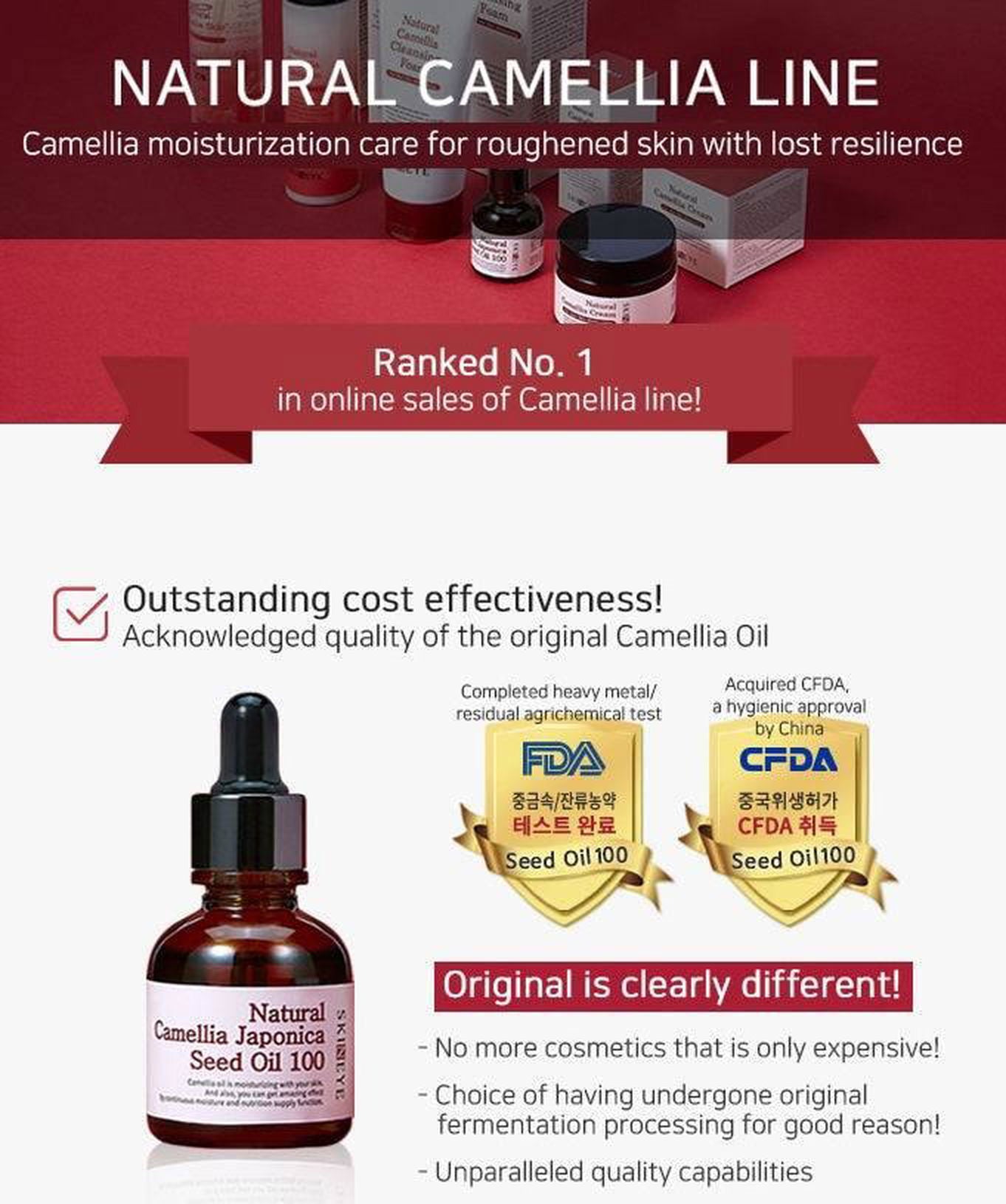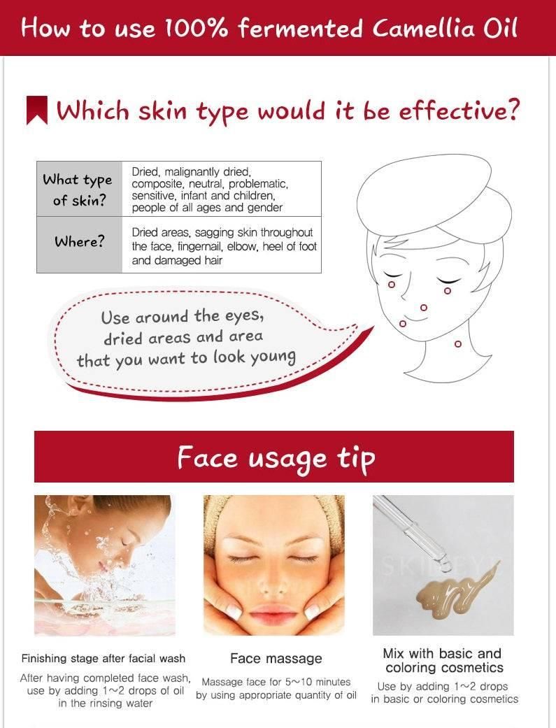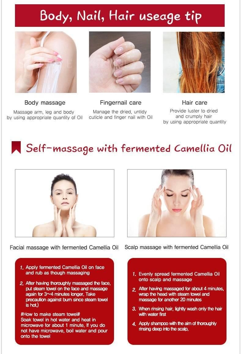 – Camellia oil is moisturizing with your skin and also, you can get amazing effect by continuous moisture and nutrition supply function.