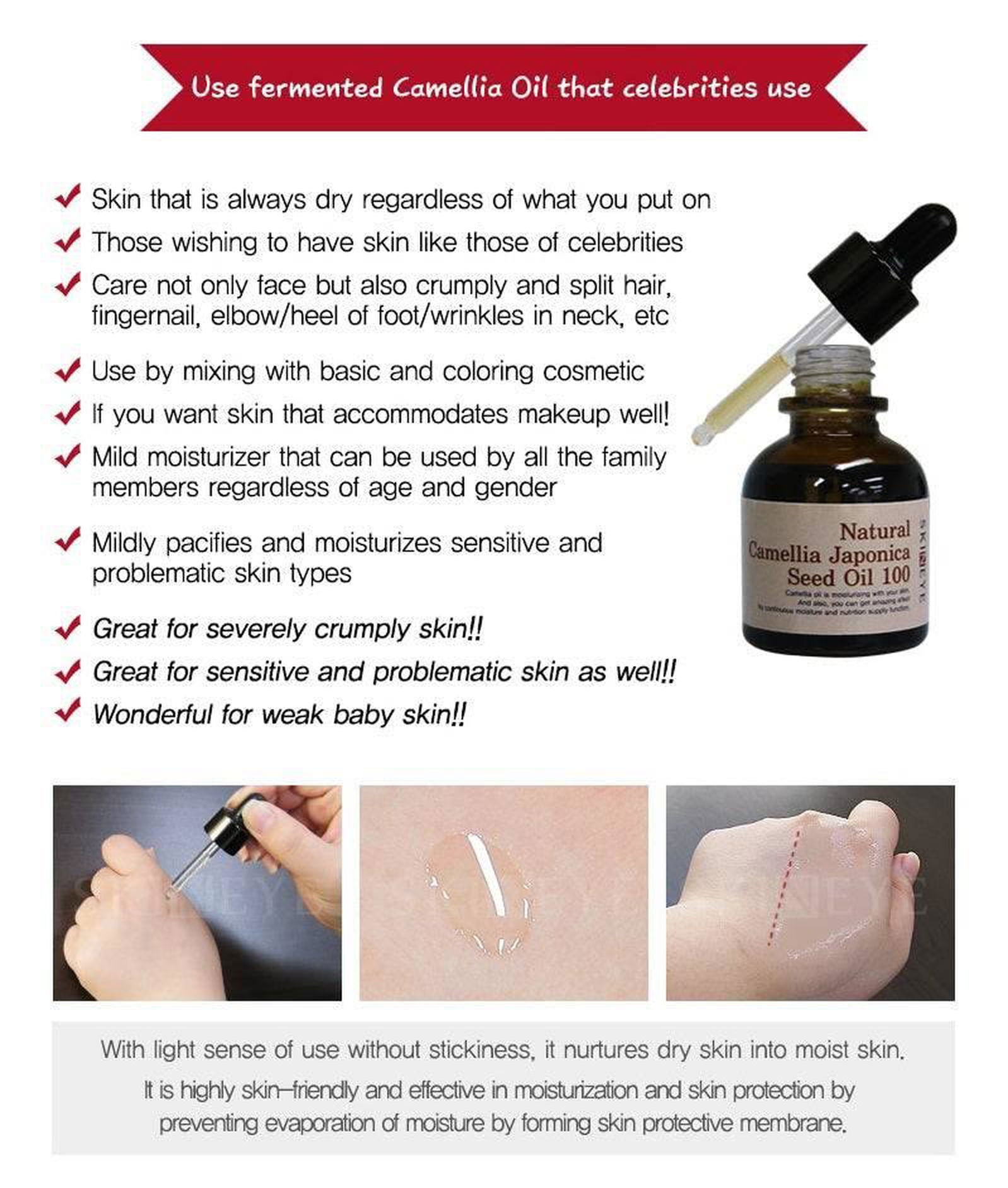– Only 1 ingredient : Camellia Japonica Seed Oil 100%