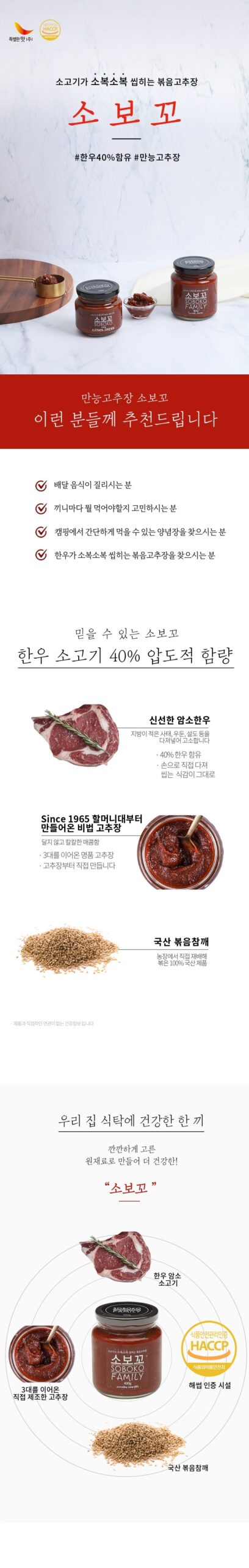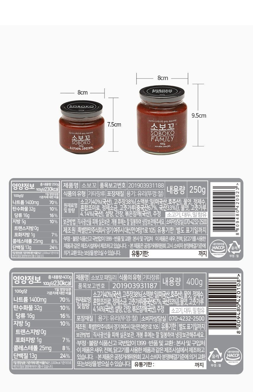Embrace a culinary journey with SOBOKO’s stir-fried red pepper paste with Korean beef(한우). A perfect blend of tradition, quality, and taste, this product is ideal for anyone looking to enjoy authentic Korean flavors in the comfort of their home.