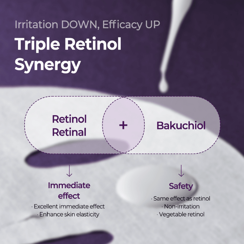 - Contains retinol, retinal and bakuchiol to help boost skin elasticity with low irritation.