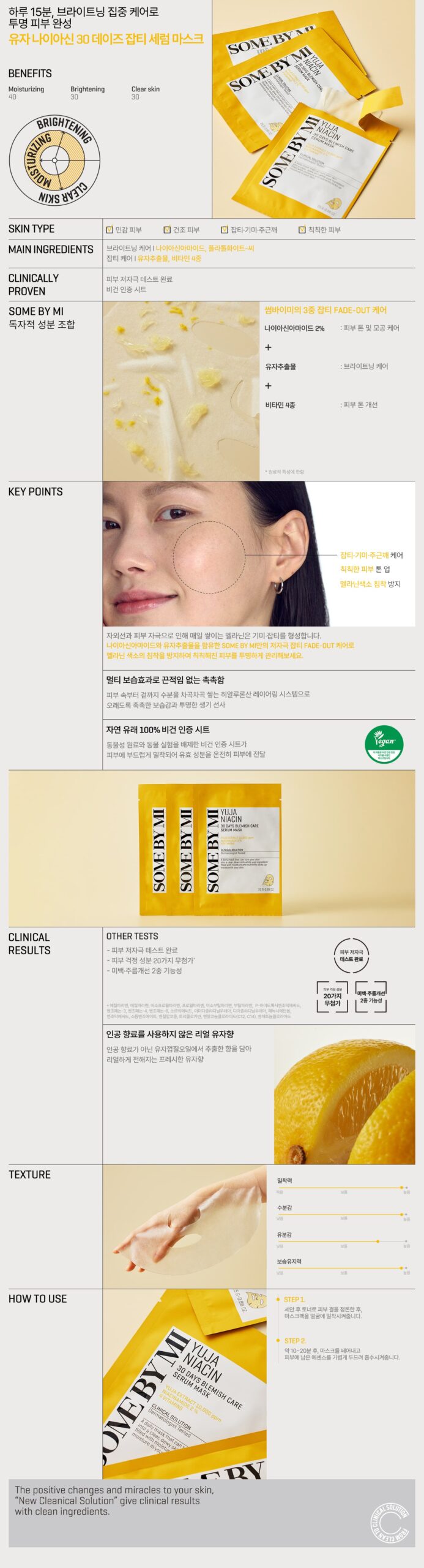 * Experience intensive brightening care from Sheet mask, contained with the nutrients of Yuja Serum, 15 minutes a day.