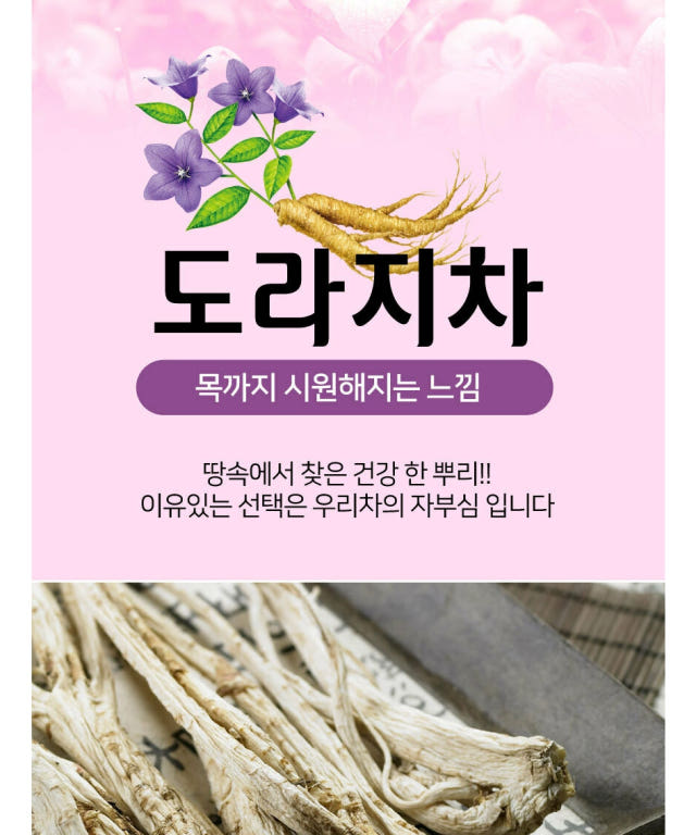 A feeling of cooling down to the throat, bellflower tea made from Balloon Flower grown in Korea, the beginning of healthy well-being