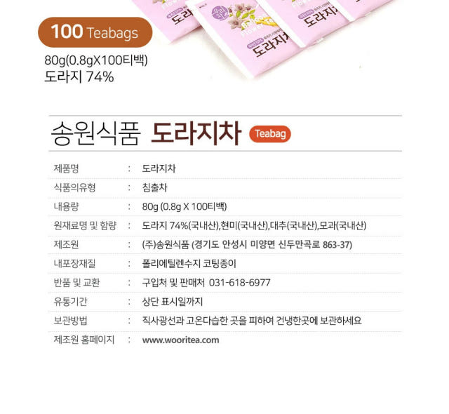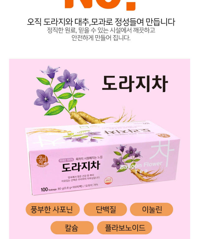 Balloon Flower 74% (from Korea), brown rice (from Korea), jujube (from Korea), quince (from Korea)