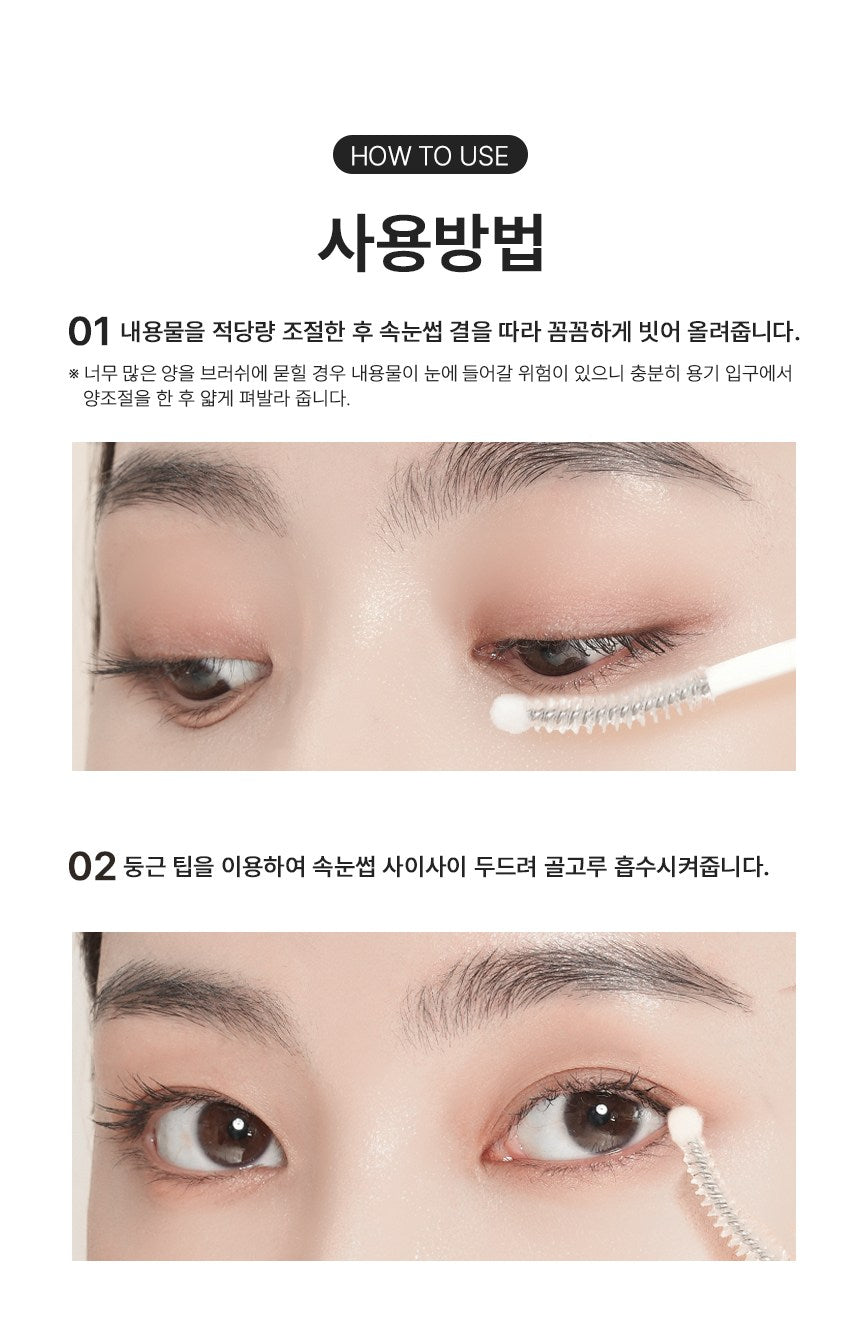 - Prepare the Brush: After adjusting the content on the brush to ensure no excess, carefully comb the serum along your eyelash texture from root to tip. Tip: To prevent excess product from getting into your eyes, adjust the amount at the container’s opening and apply thinly.