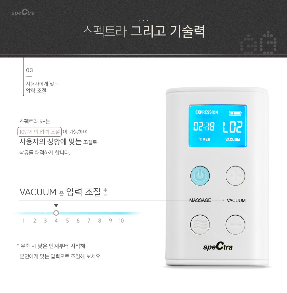 It can be adjusted in 10 levels and can be adjusted to suit the user’s situation, making milking more comfortable.