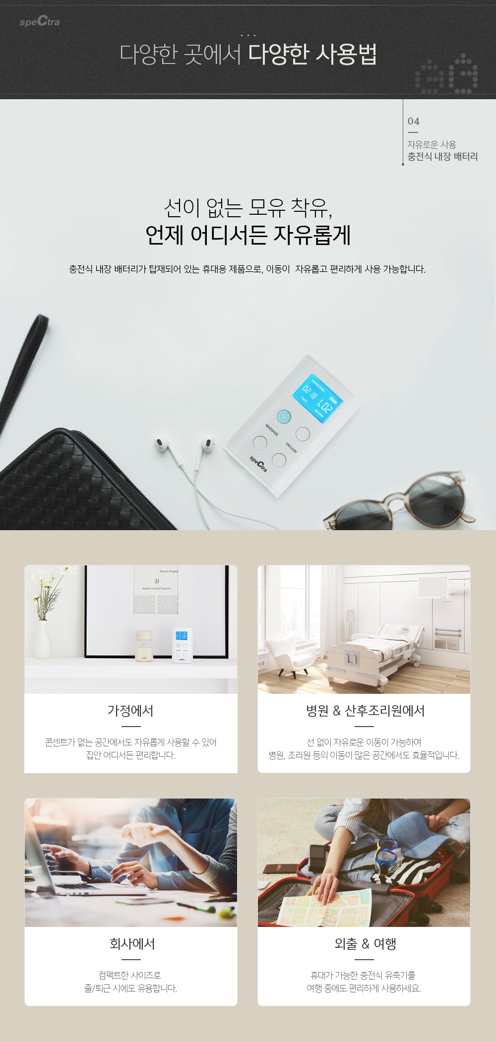 As it is equipped with a rechargeable built-in battery, it is a portable product and can be used freely and conveniently.