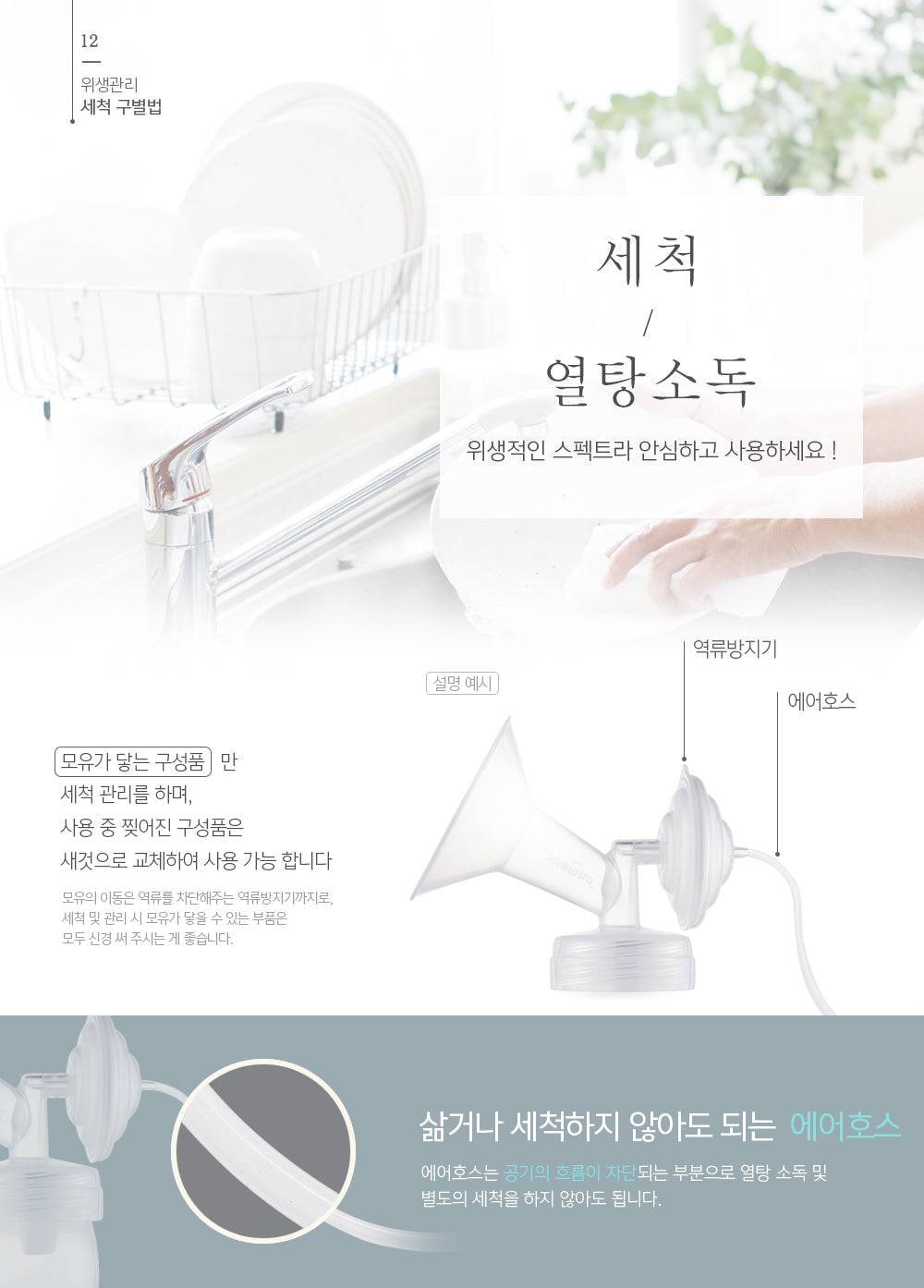 Only components that come in contact with breast milk are cleaned, and components that are torn during use can be replaced with new ones.