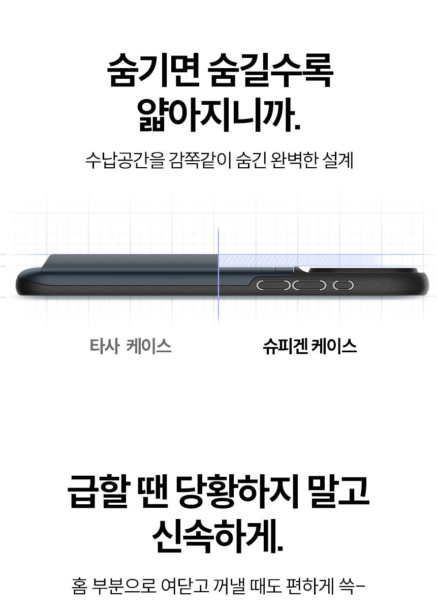 Break free from the idea that storage cases must be thick. This innovative design achieves the perfect balance of storage capacity and slimness for effortless portability.