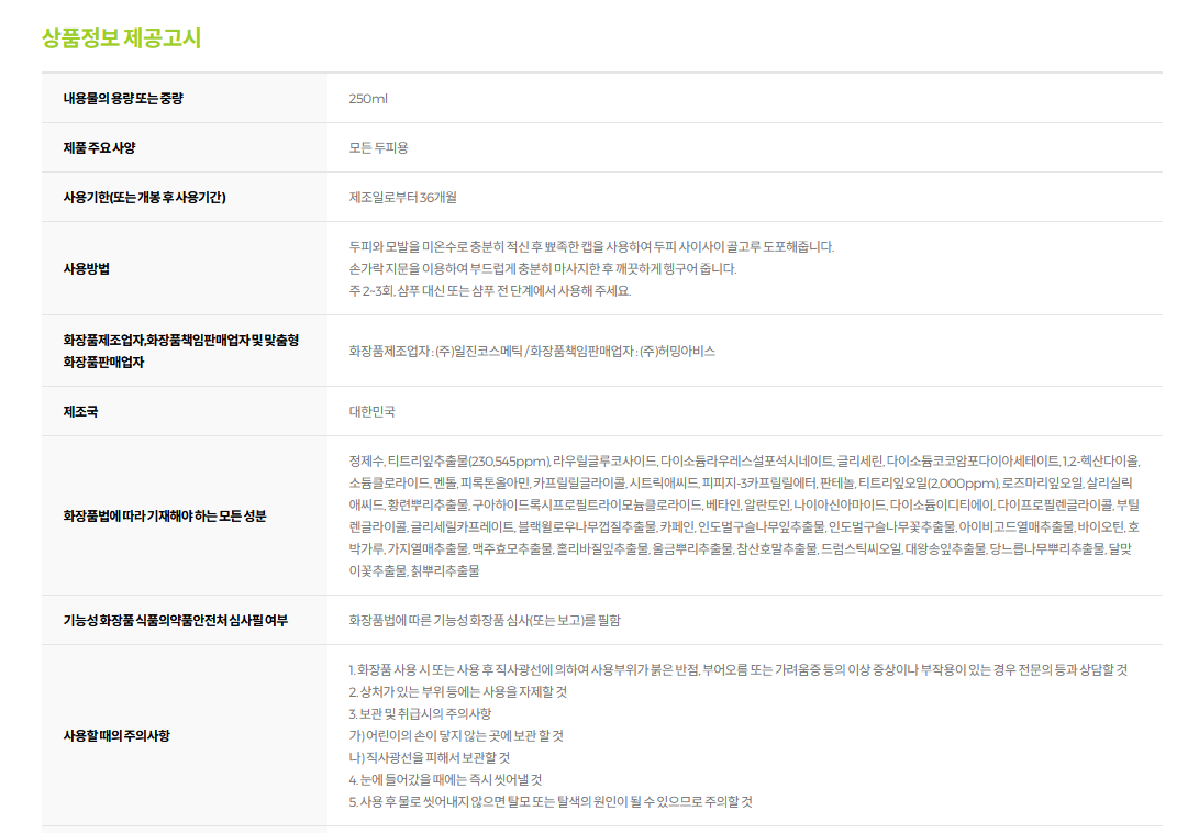 - Panthenol, Niacinamide, Salicylic Acid: Functional ingredients recognized by the Ministry of Food and Drug Safety, helping to alleviate hair loss symptoms.