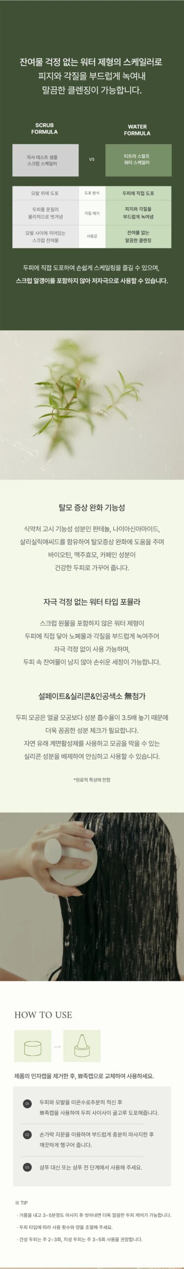 - Tea Tree Leaf Extract: Corrects oil-water balance, refreshing the oily scalp.
