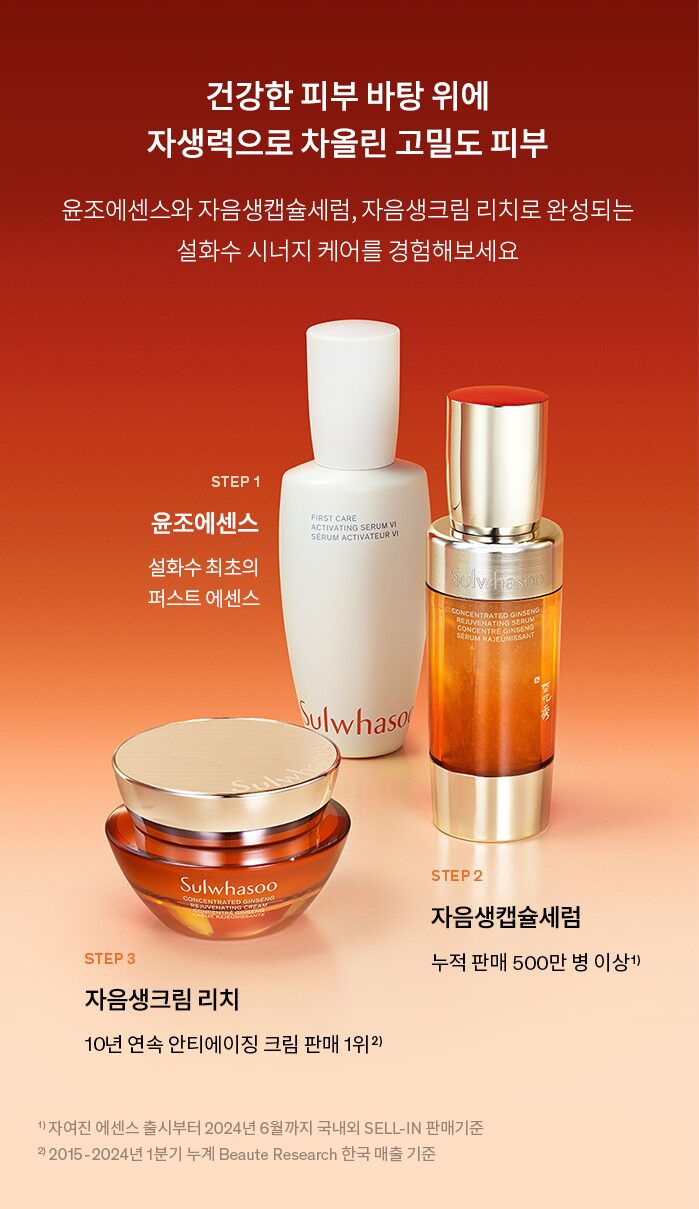 Experience the core of Sulwhasoo’s anti-aging technology with Ginsenomics™—a rare ginseng saponin concentrated 6,000 times. This powerful ingredient restores collagen within 48 hours, targeting 18 key signs of aging to help maintain your skin’s natural resilience.