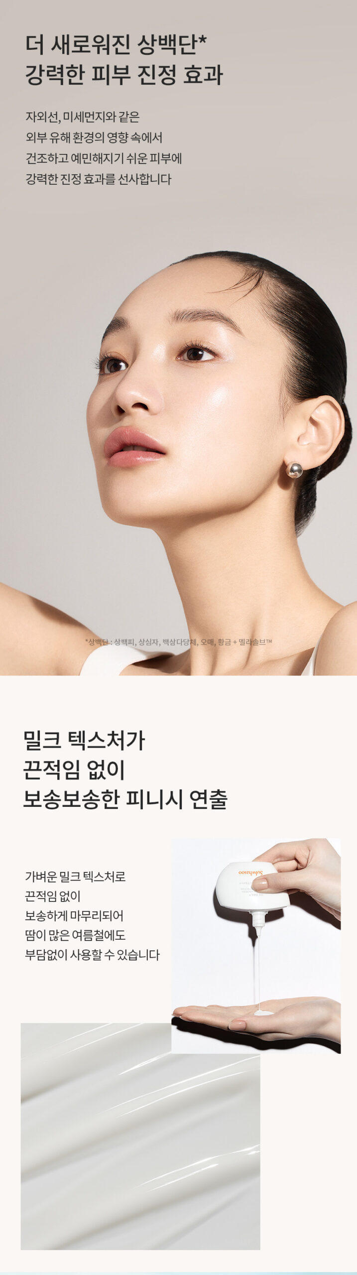 The newly improved formula contains Sangbaekdan Complex, known for its powerful skin-soothing properties. This unique blend, consisting of white birch bark, heartwood, white ginseng saponins, omija fruit, and skullcap, combined with Melasolv™, offers unparalleled relief. It effectively calms skin that’s become dry and sensitive due to external stressors like UV rays and pollution, ensuring your skin remains hydrated and comfortable.