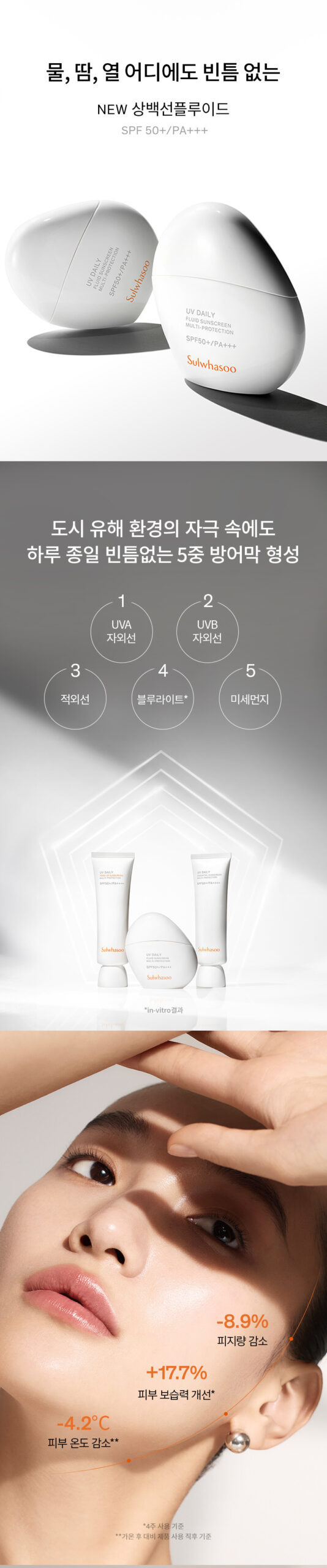 Discover the epitome of sun protection with Sulwhasoo’s UV Daily Fluid Sunscreen Multi-protection SPF50+ PA+++, a premium sunscreen designed to offer robust, waterproof protection that stands up to water and sweat with ease. Ideal for outdoor activities like golf and tennis, this sunscreen ensures a seamless blend into your skin without leaving any residue, providing a soft and smooth finish perfect for any adventure.