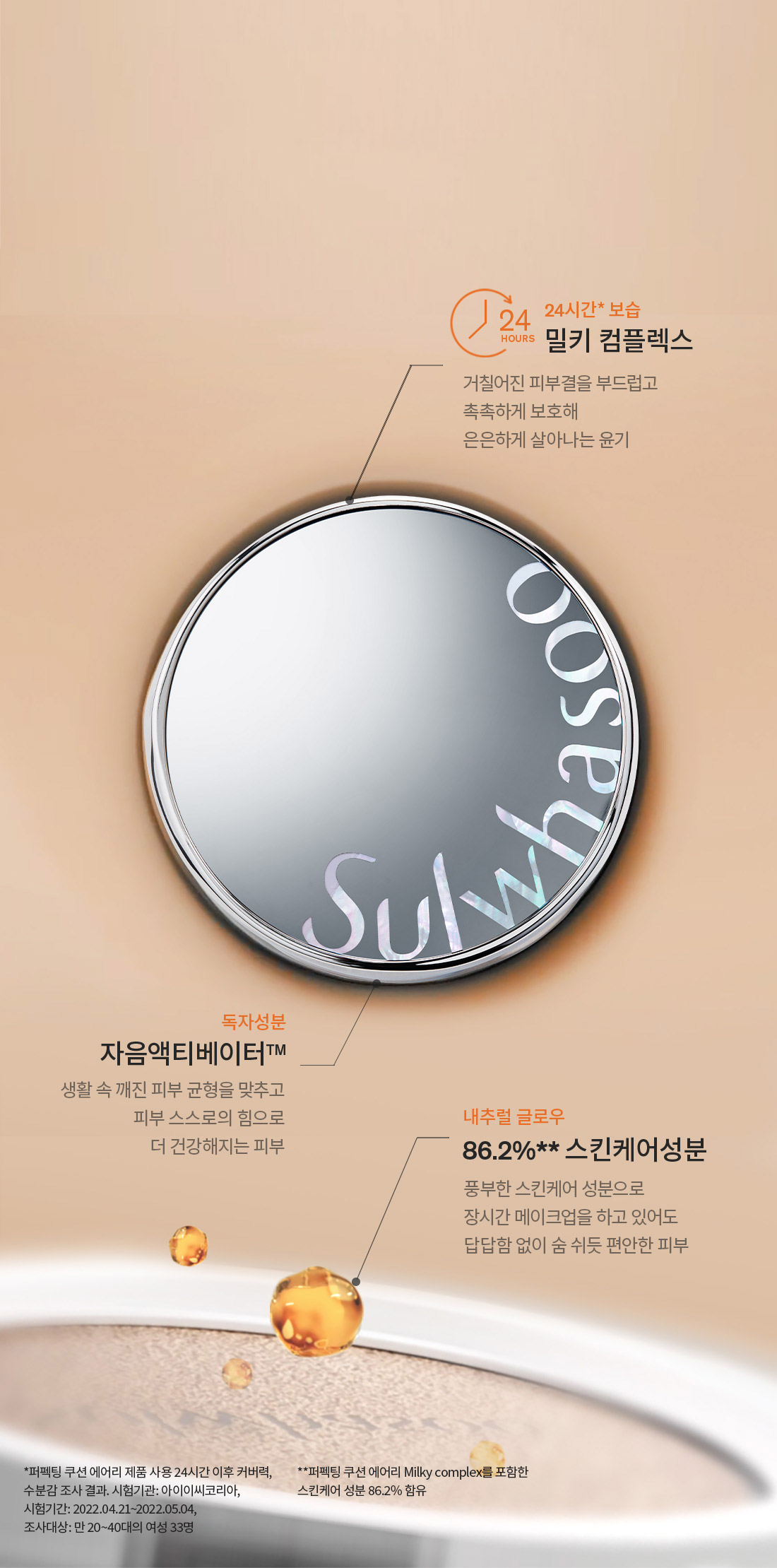 Discover the essence of natural beauty and comfort with Sulwhasoo’s Perfecting Cushion Airy, a masterpiece that harmonizes makeup and skincare. This innovative cushion foundation is designed to maintain a fresh, moisturized look for 24 hours, thanks to its impressive 86.2% skincare ingredient composition.