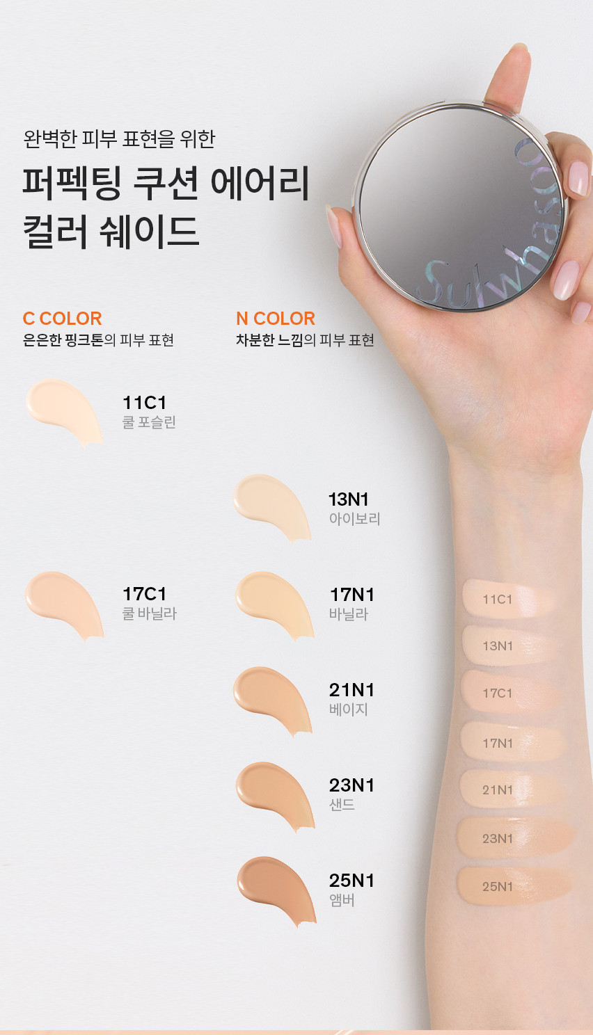 - Perfecting Cushion Airy: Achieve a natural makeup look with a radiant, healthy blush that feels as fresh as if you’ve just applied it.