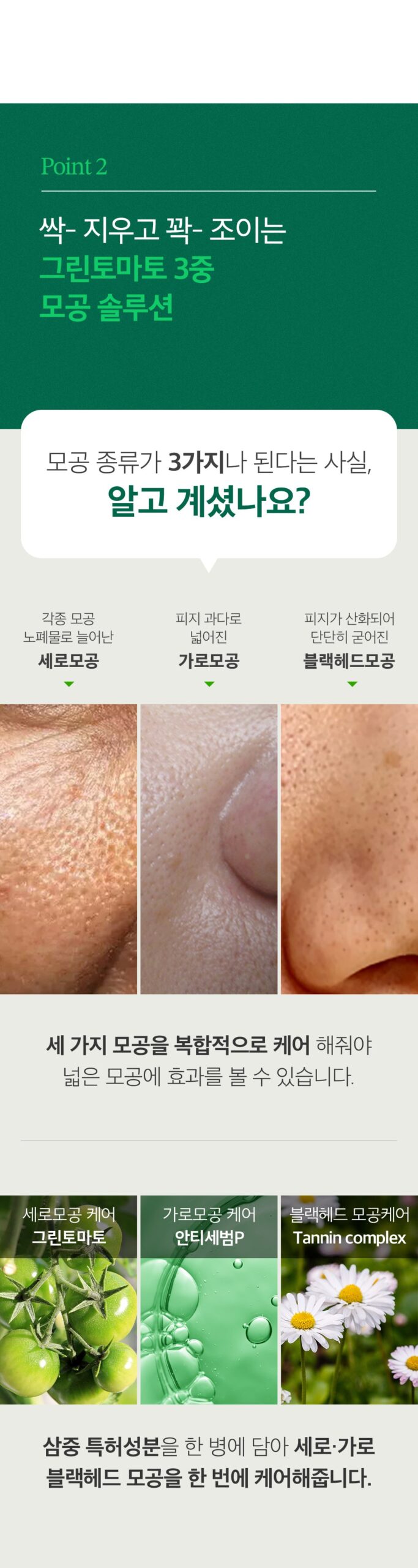Triple Patented Ingredients: Combines patented ingredients for vertical, horizontal, and blackhead pore care in one bottle.