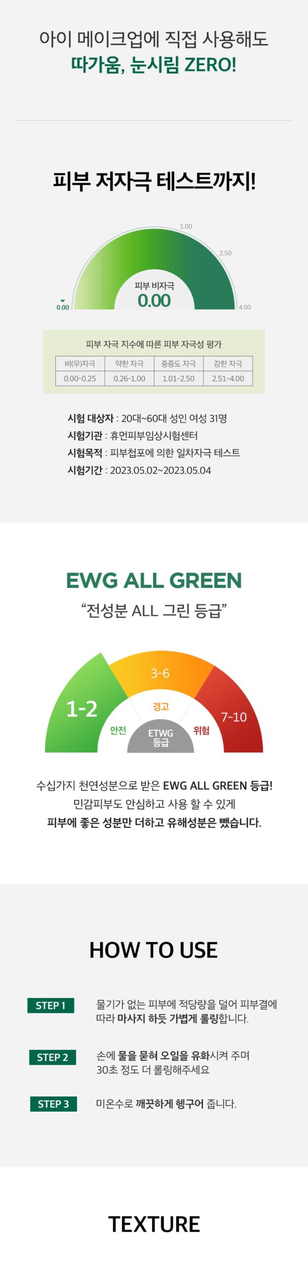 EWG All Green Grade : The product has received an EWG All Green grade, indicating its safety and suitability for use on sensitive skin.