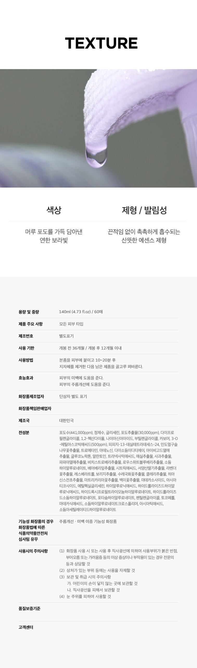 - Base of 44% grape water enhances the clarity and smoothness of the skin.
