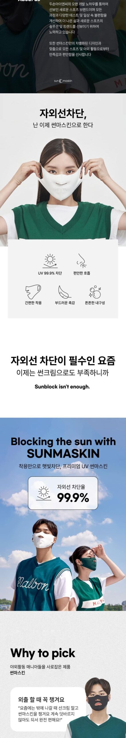 * SUNMASKIN Premium UV Protection Sports Golf Fishing Mountain Climbing Bicycle Tennis Outdoor Activities Mask Open Style MADE IN KOREA