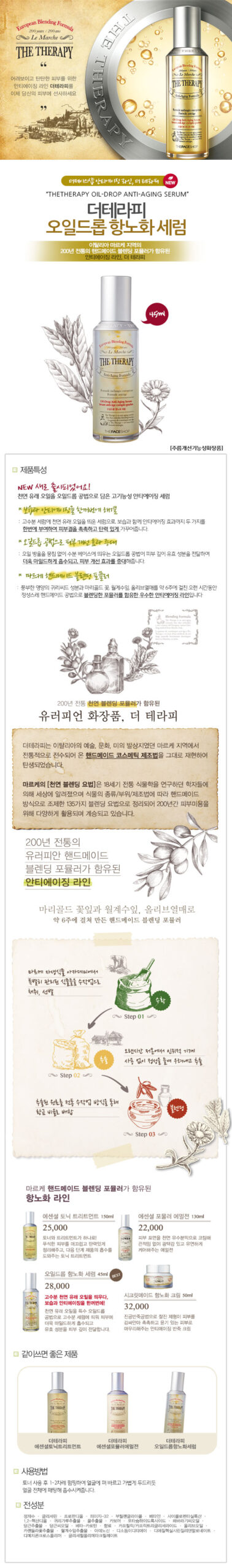 This highly functional serum is formulated with a natural essential oil process using the oil drop technology to help the skin absorb it more quickly and improve skin condition. It rejuvenates the skin via deep moisturizing.