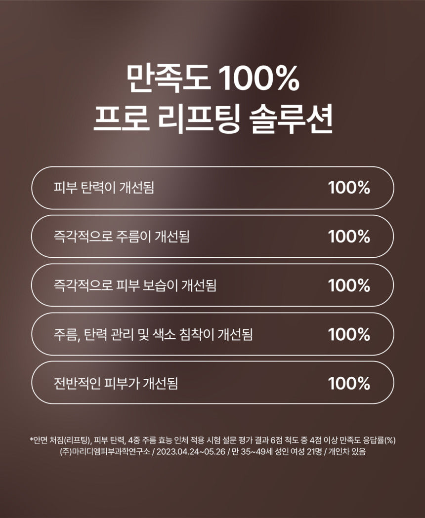 - Facial Lifting Improvement: +125%