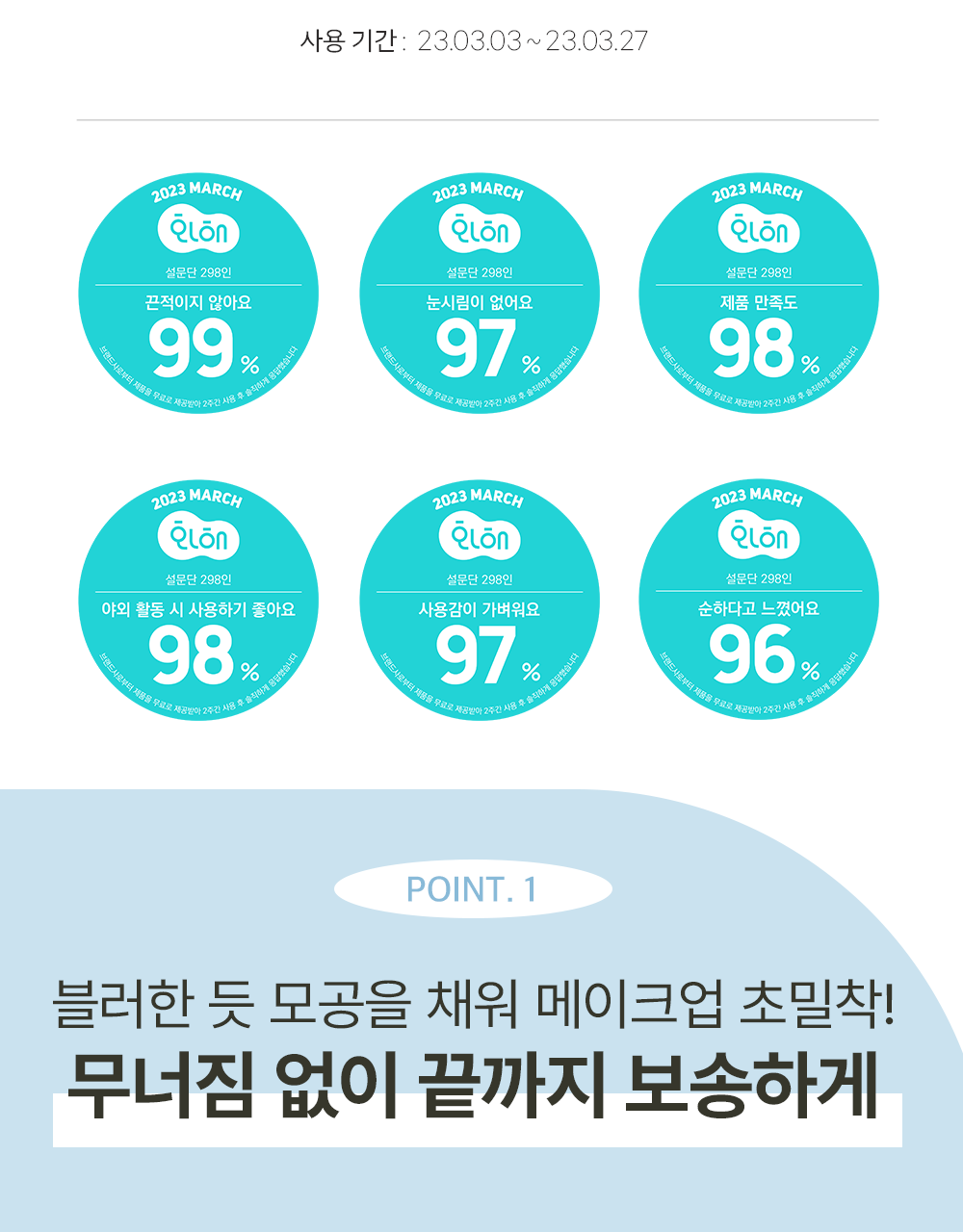 • Oil Absorption: Contains globular powder that absorbs skin oil, giving a light and soft fit.