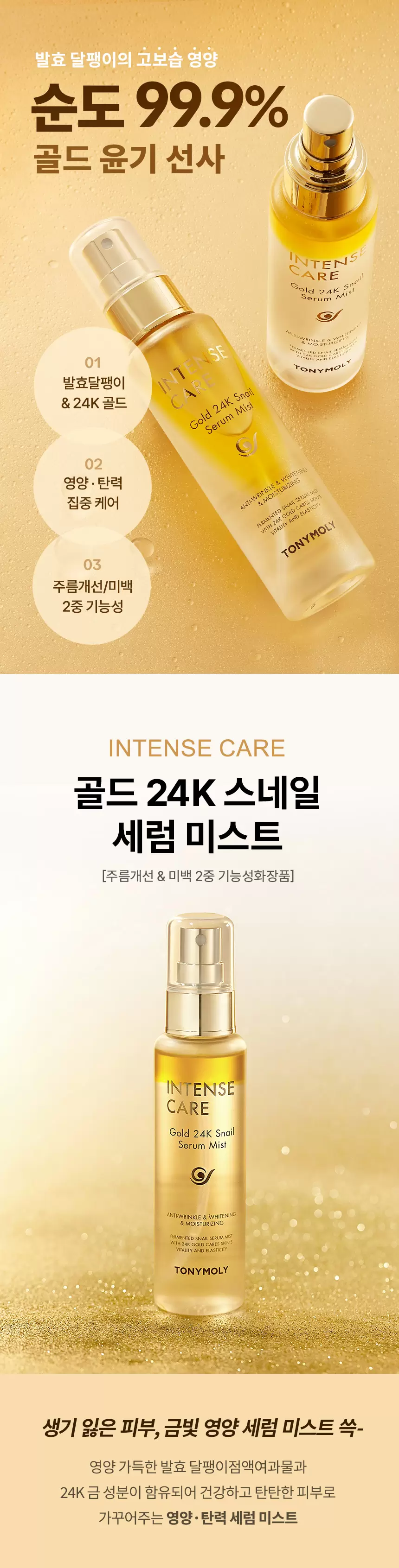 Transform your skincare routine with the TONYMOLY Intense Care Gold 24K Snail Serum Mist – your secret to healthy, firm, and brilliantly glowing skin.
