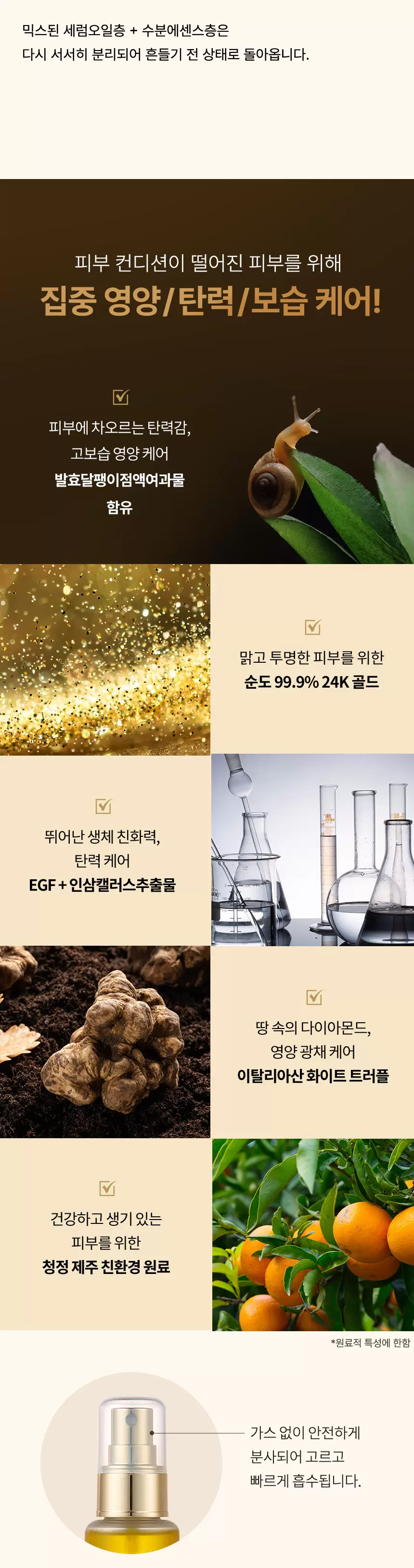 | Italian White Truffle | Provides rich nutritional radiance care, forming a luxurious oil-coated moisturizing film. |