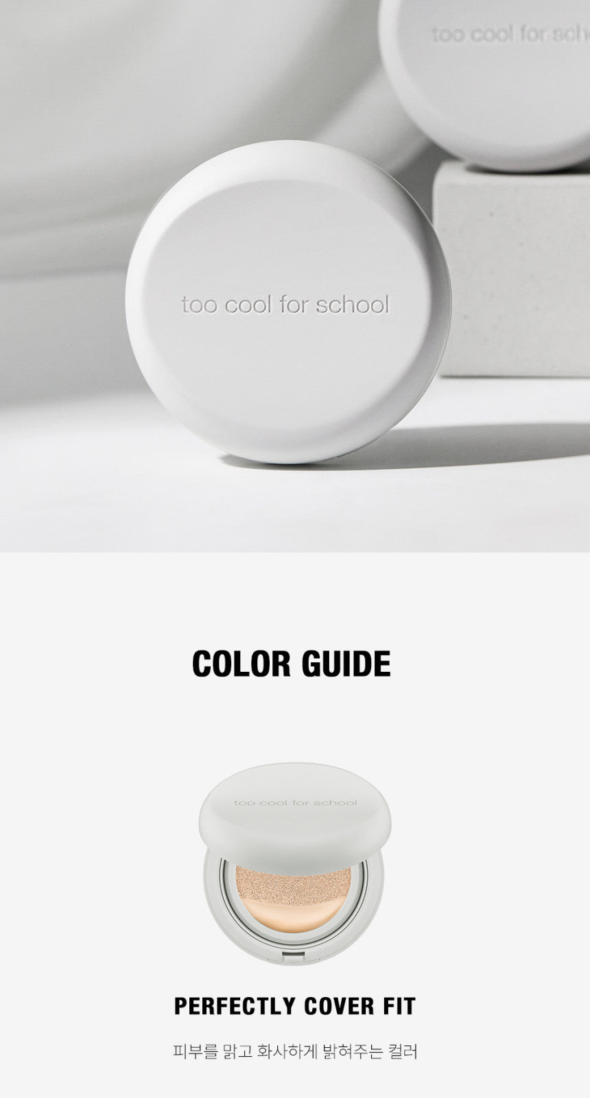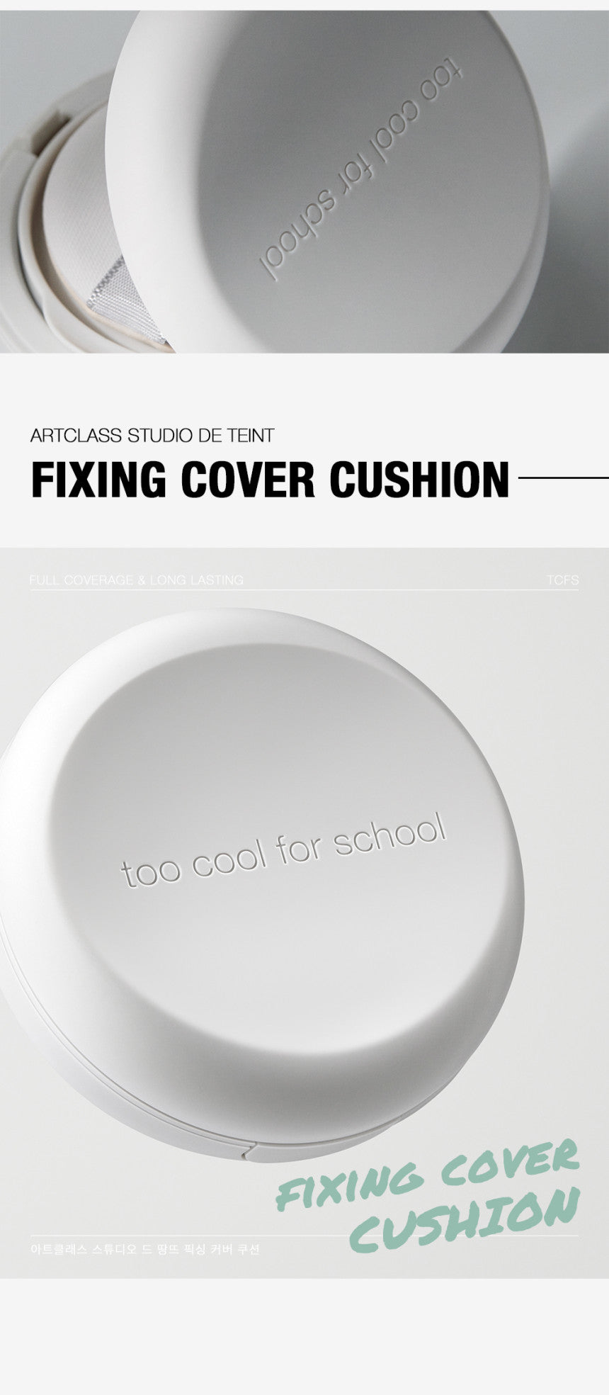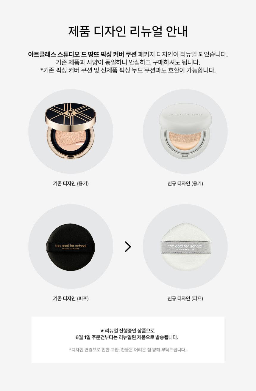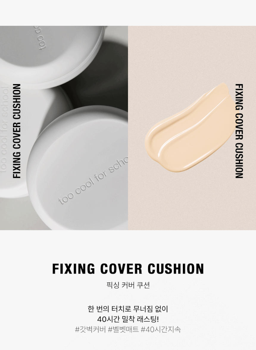 Embrace the innovation of the too cool for school Fixing Cover Cushion for a flawless, comfortable, and lasting beauty experience.