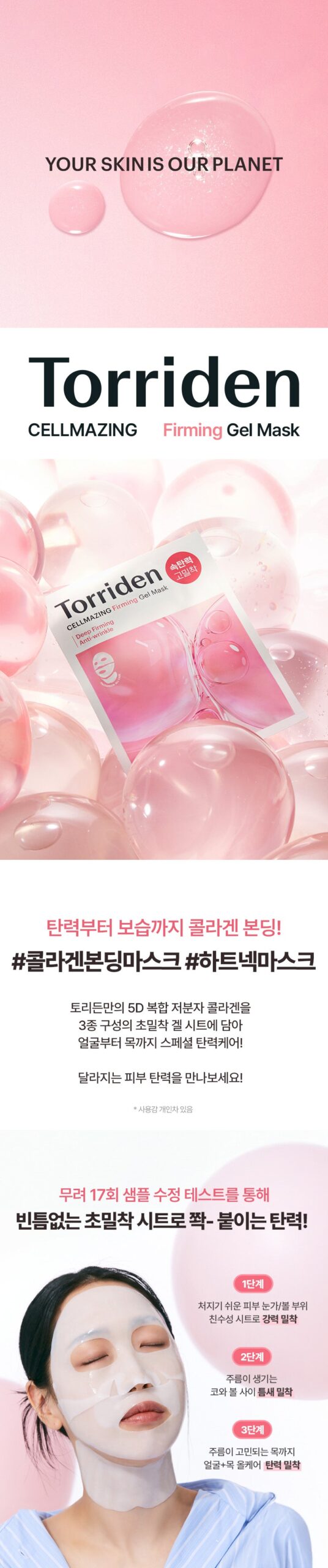 - 5D Complex Collagen: Utilizes Torriden’s innovative 5D complex with low-molecular-weight collagen, delivered through a gel sheet that adheres seamlessly from your face to your neck.