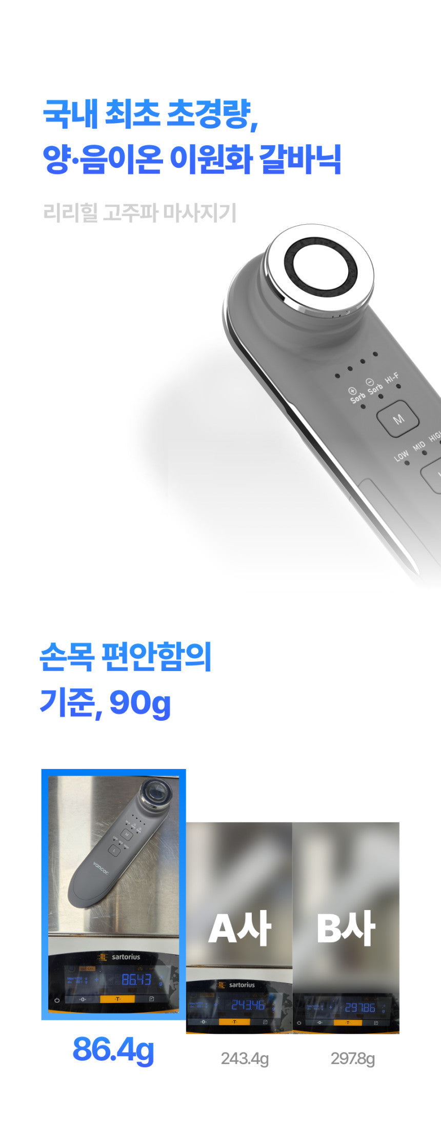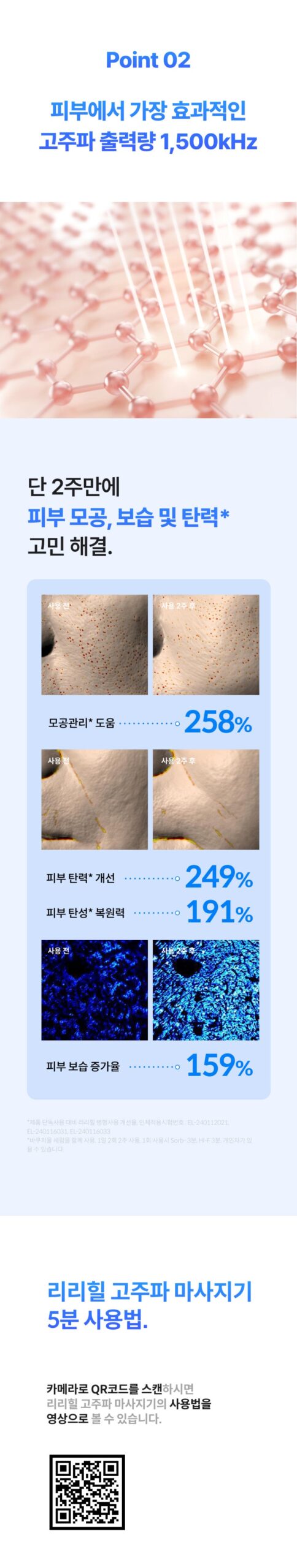 It promotes the secretion of collagen and elastin, penetrates into the dermis of the skin, creates friction between molecules, and fills the skin with elasticity.High-frequency RF mode is effective in resolving skin concerns from deep within, as if receiving daily care from a professional.