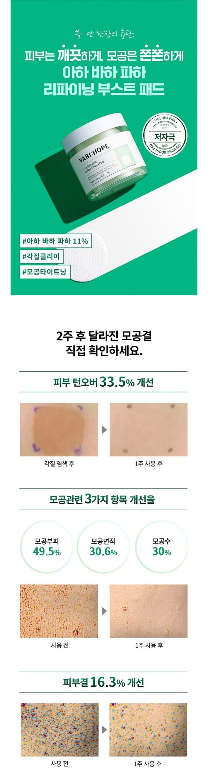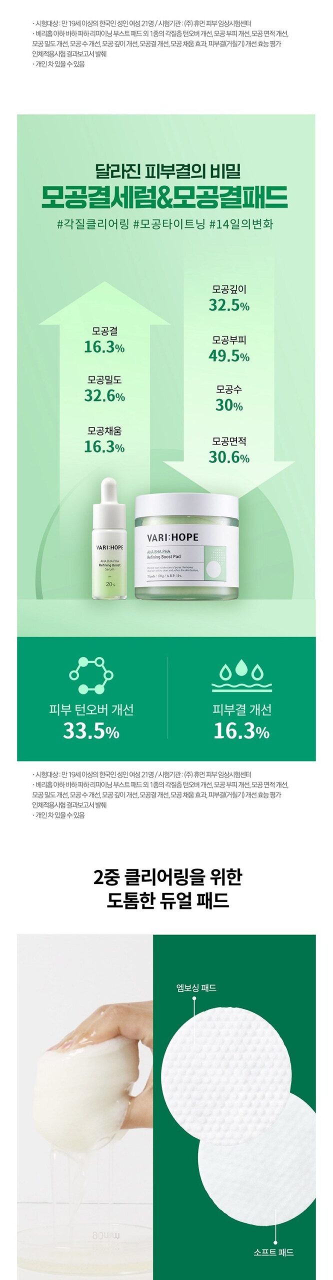 Experience a transformative skin care routine with our dual-action pad, designed for comprehensive dead skin cell, sebum, and waste clearing. Achieve smoother skin texture and visibly clearer pores with our innovative product that promises noticeable results within just two weeks. Witness a significant improvement in skin turnover by 33.5%, along with enhanced pore volume, area, and number, leading to a 16.3% improvement in skin texture.