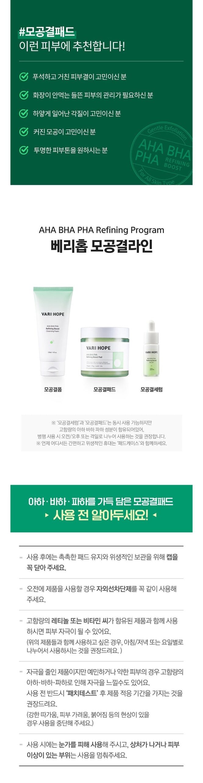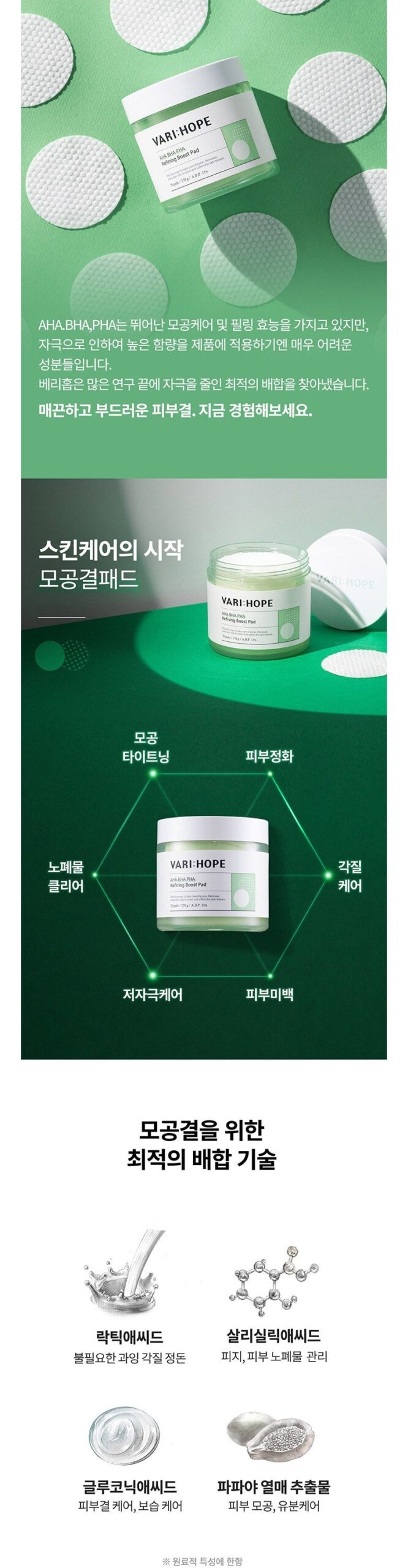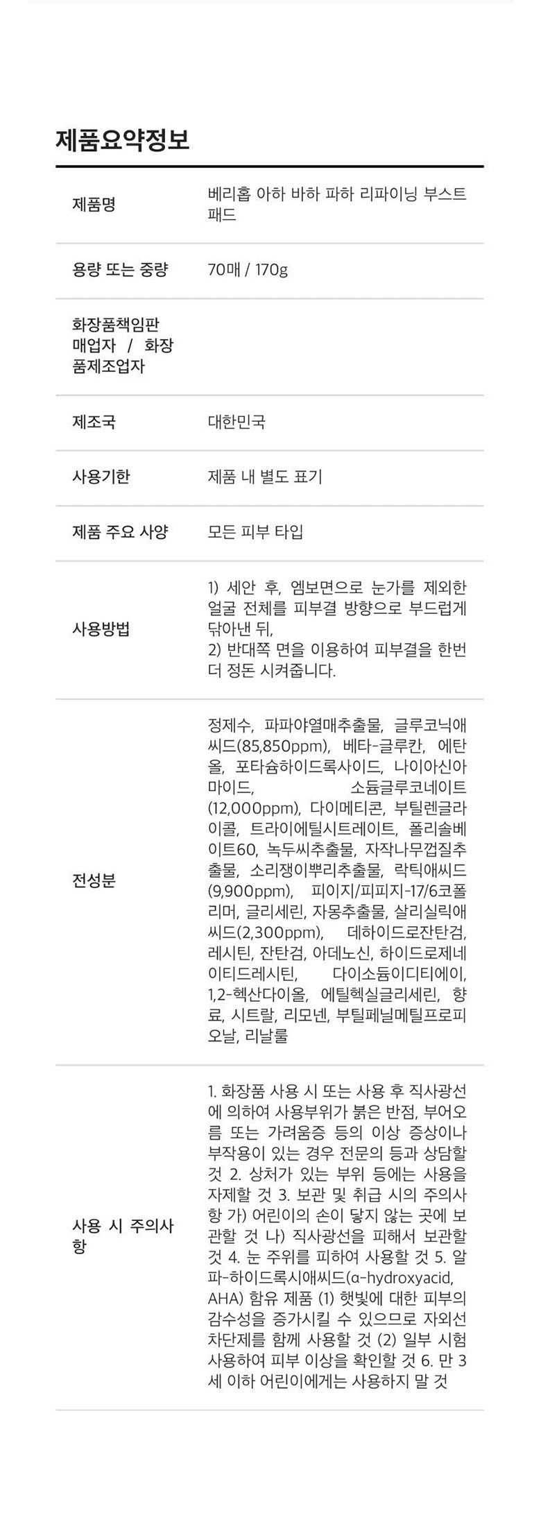 - AHA: Clears dead skin cells and cares for skin texture.