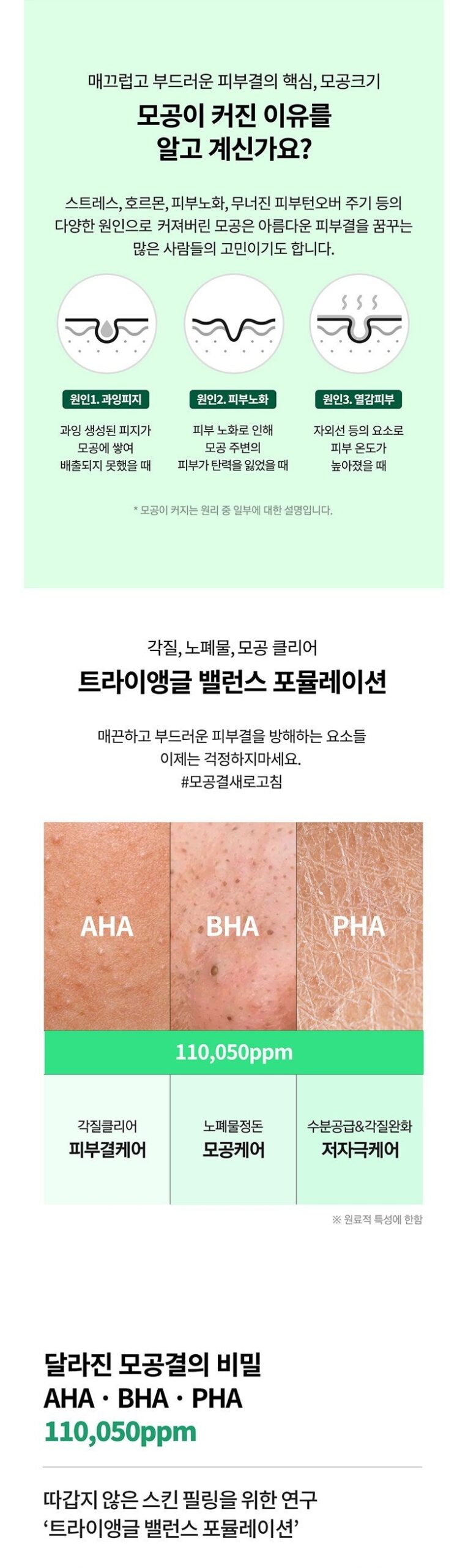 Our unique triangle formulation contains a potent blend of 110,050 ppm of AHA, BHA, and PHA, targeting various skin concerns: