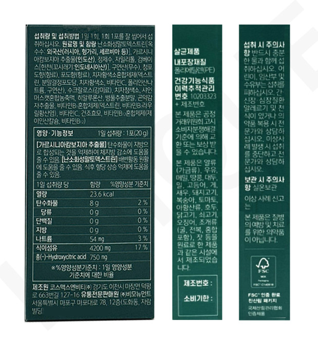 Our Veganery Diet Jelly 4200mg (Shine Muscat Flavor) is a health-functional food containing triple functionality ingredients recognized by the Korean Food and Drug Administration (KFDA): Garcinia Cambogia Extract and Indigestible Maltodextrin.