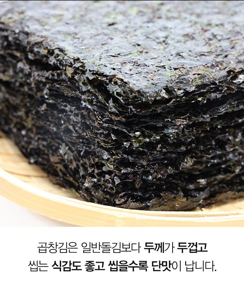 Pair this premium gopchang dolkim with dried shrimp, anchovies, or a simple bowl of rice for a wholesome, nutritious meal. Elevate your dining experience with the pure flavors of Korea’s finest seaweed! 🌊🍙