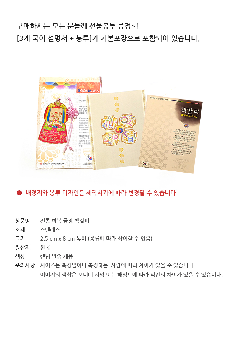 - Assorted Colors & Designs: The specific Hanbok pattern and color of the bookmark will be sent randomly, offering a unique surprise with each order.