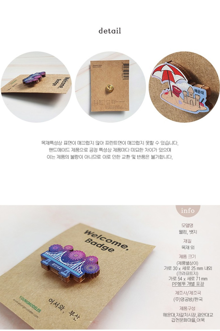 Celebrate your adventures in Busan with our delightful Welcome to Busan Mini Wooden Badges! Each badge showcases a beloved landmark, expertly crafted from premium wood sourced in South Korea, making them the perfect keepsake or gift for travel enthusiasts. With their unique handmade charm and slight variations, these badges encapsulate the spirit of Busan, allowing you to carry a piece of its beauty wherever you go. Don't miss out on our limited-time 30% sale!