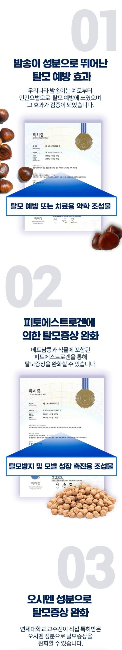 Contains 3 exclusive patents for hair loss total care ingredients (hair growth/hair growth promotion/hair loss treatment)