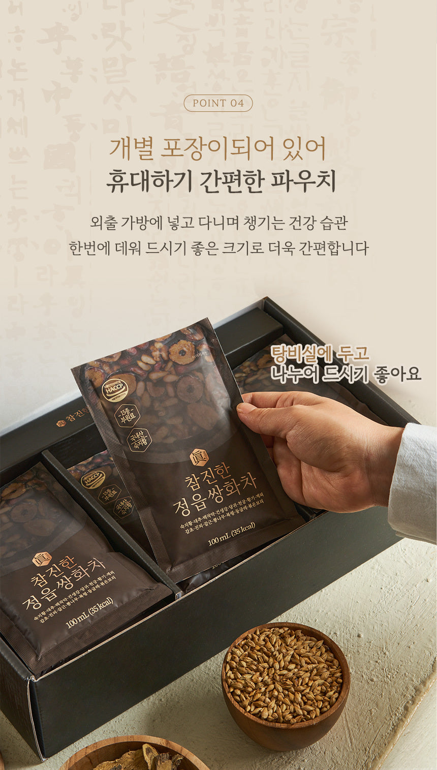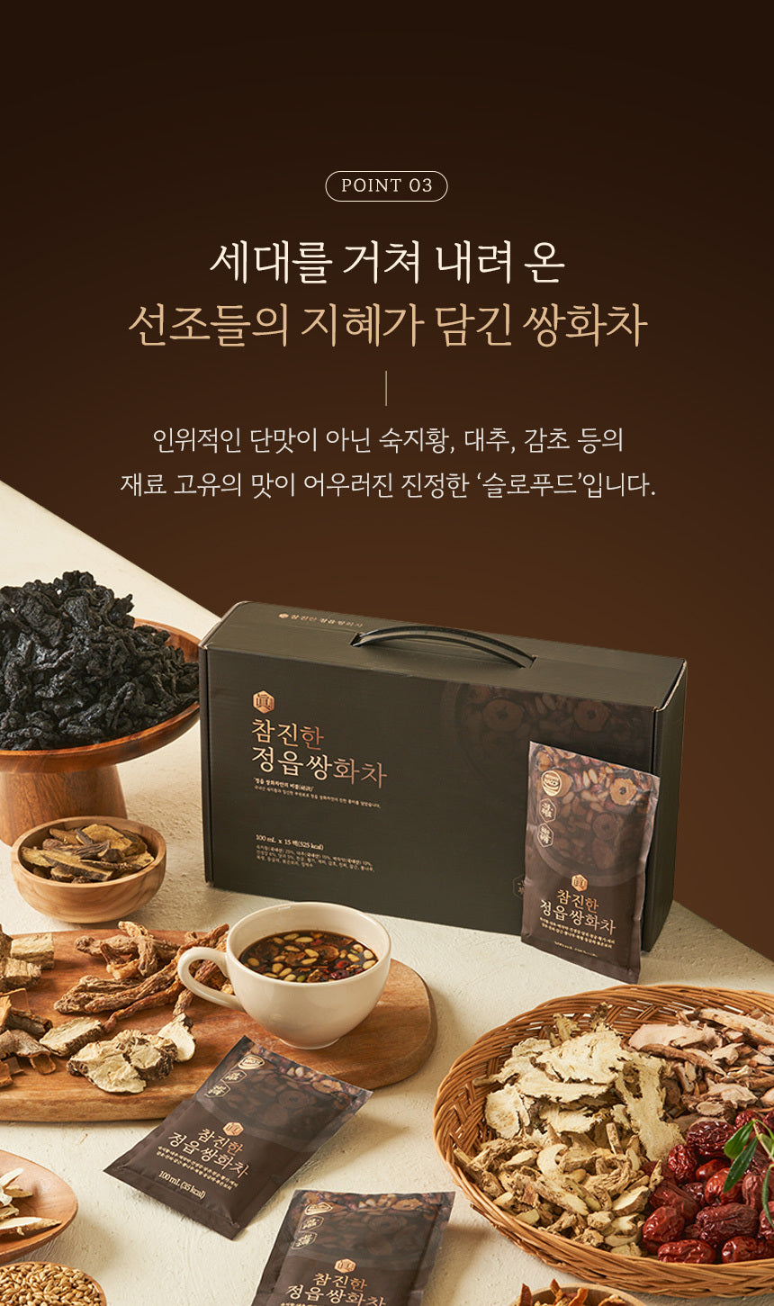 Enjoy the warmth and depth of Cham Jinhan Jeongeup Ssanghwacha—a time-honored remedy for both body and soul.