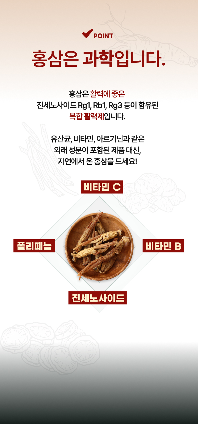 - 6-Year-Old Ginseng: Carefully aged Korean red ginseng for optimal potency