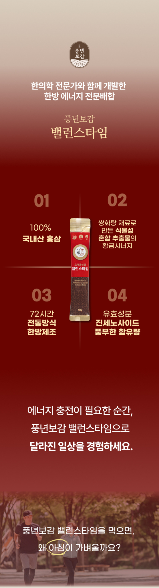 Achieve daily balance with PUNGNYEON BOGAM Balance Time Korean Red Ginseng Extract. This premium supplement features 6-year-old red ginseng in convenient daily packets, formulated to help maintain energy balance and overall wellness throughout your busy day.