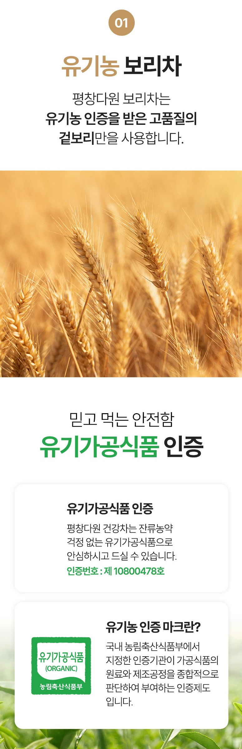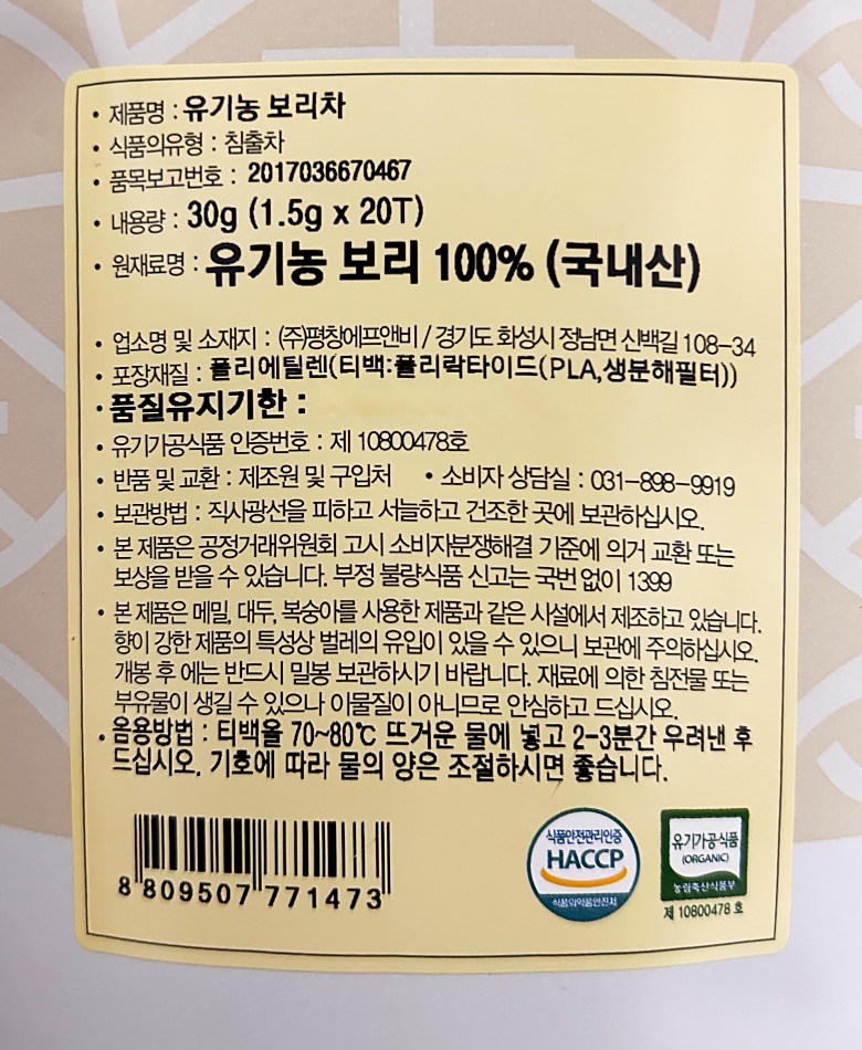 Certified Organic: Produced with organic barley, free from pesticide residues, and certified as an organic processed food by the Korean Ministry of Agriculture.