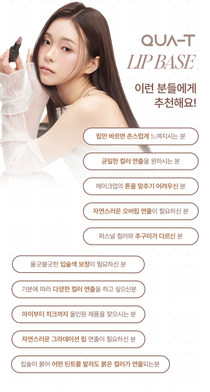 - For Precision: For a perfectly defined lip line, consider outlining your lips with a matching lip liner before filling them in with your QUATI Velvet Lipstick.