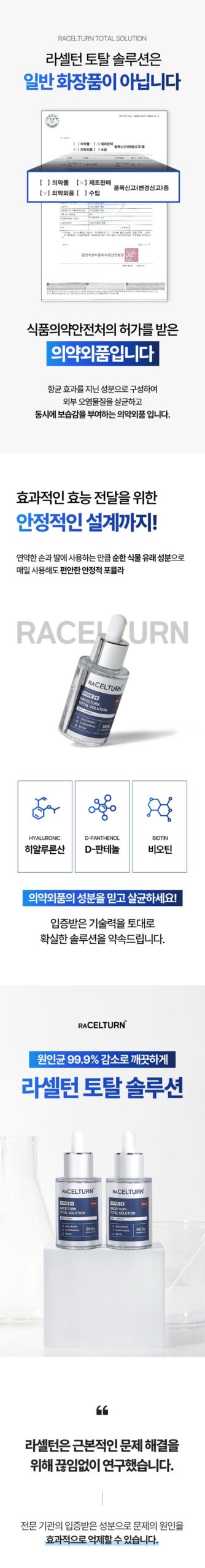 Achieve healthier nails with RACELTURN Total Solution, a specialized nail serum designed to target problem nails and restore their vitality. This isn’t just another cosmetic product—it’s a certified quasi-drug approved by the Korean Ministry of Food and Drug Safety. With antibacterial and moisturizing properties, this solution eliminates harmful external contaminants while nourishing your nails and skin.