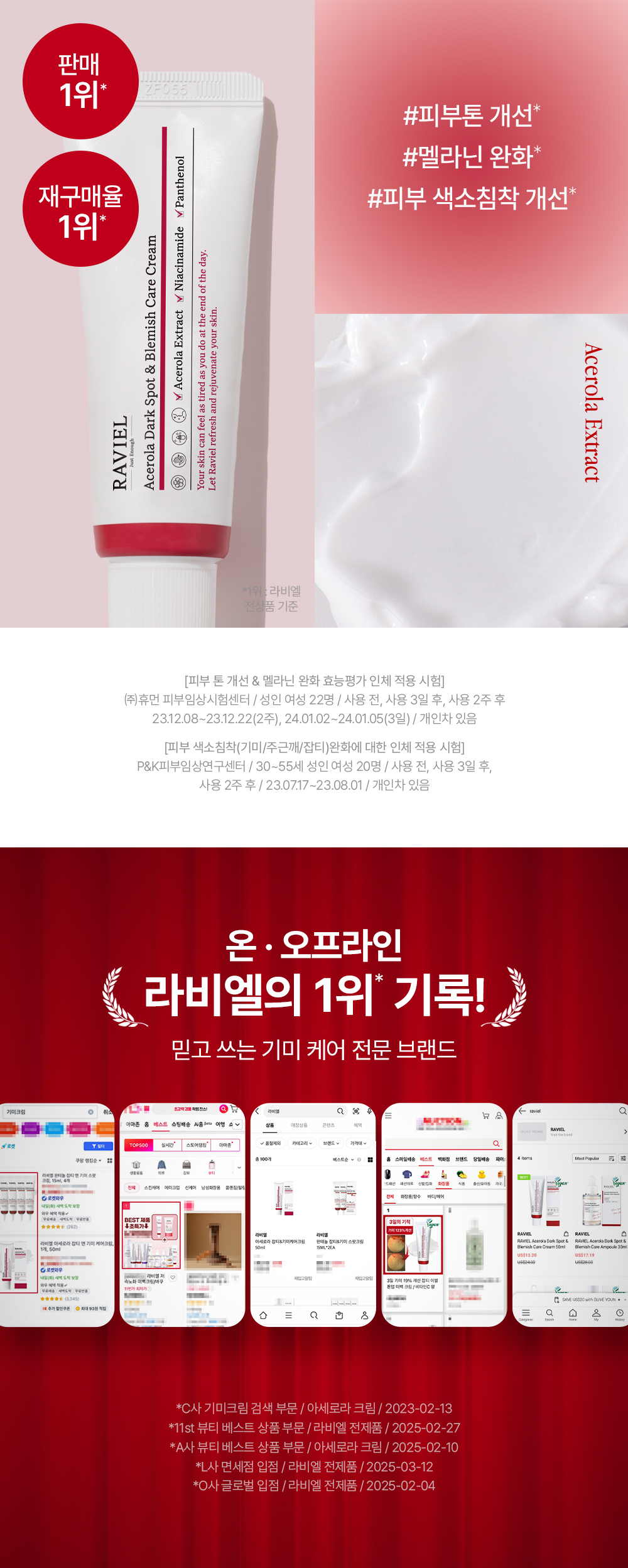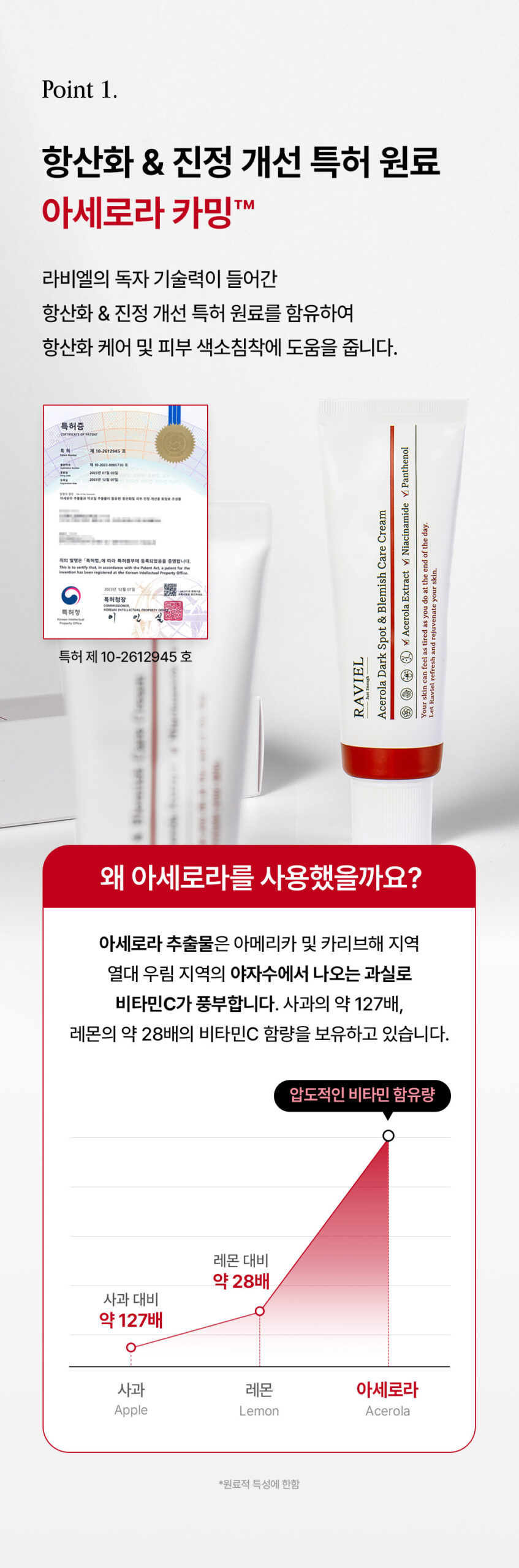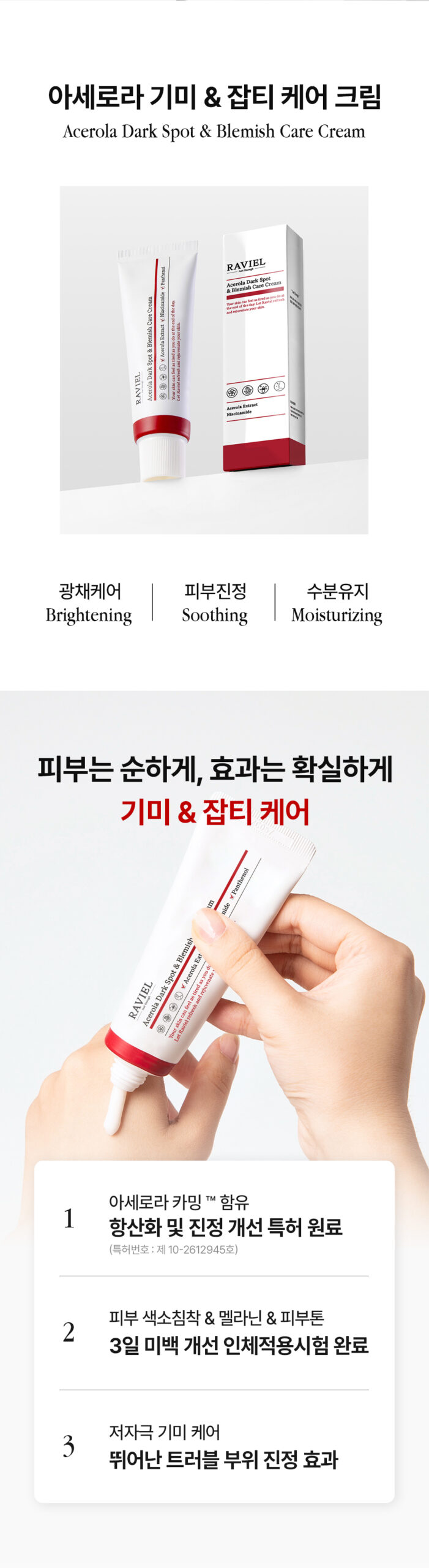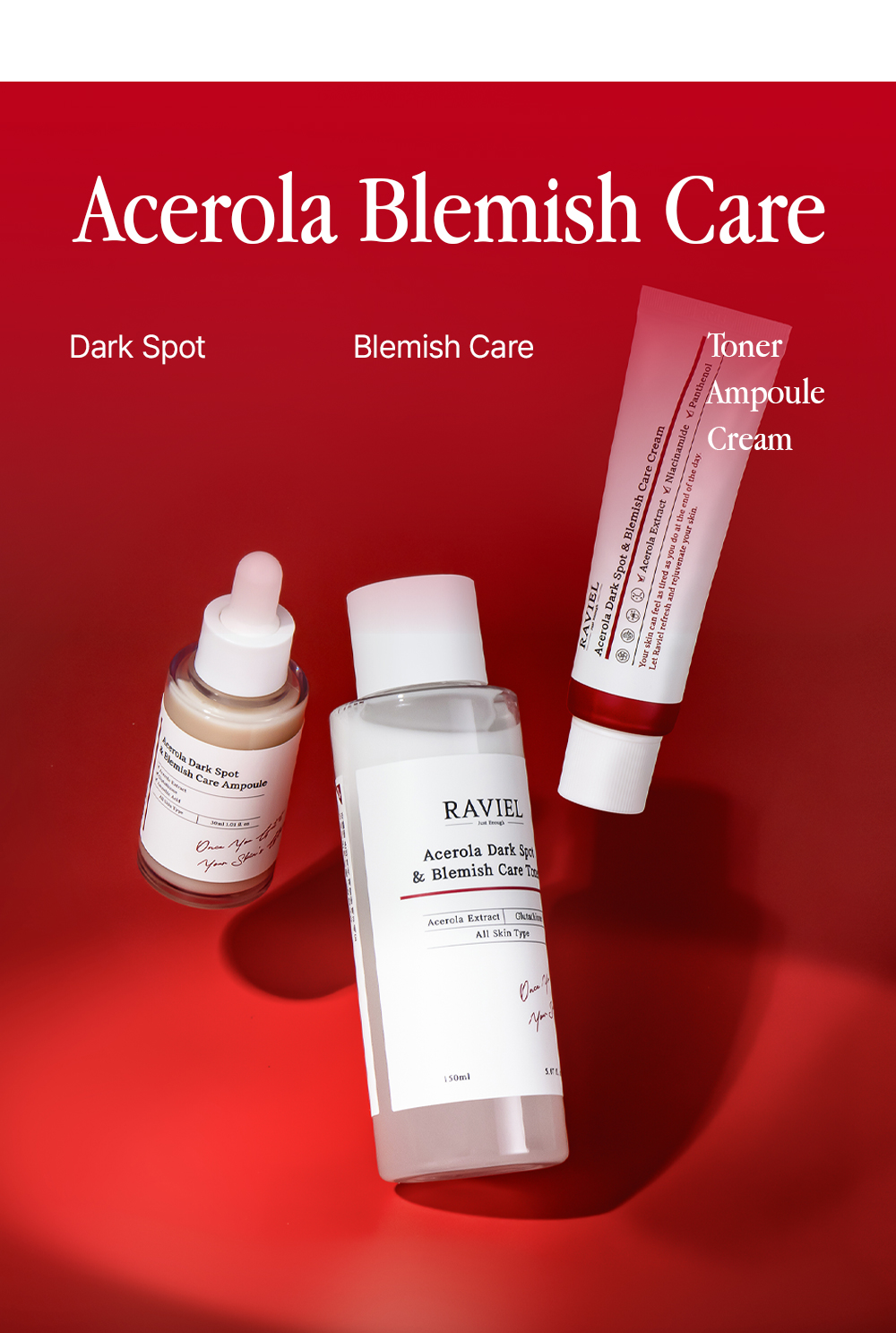 Functional cosmetics for whitening and wrinkle improvement, RAVIEL Acerola Dark Spot & Blemish Care Cream specifically targets pigmentation such as spots and blemishes, while enhancing the brightness of your skin tone.