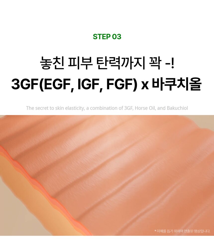 Point 03: Advanced Skin Elasticity with 3GF + Horse Oil + Bakuchiol
