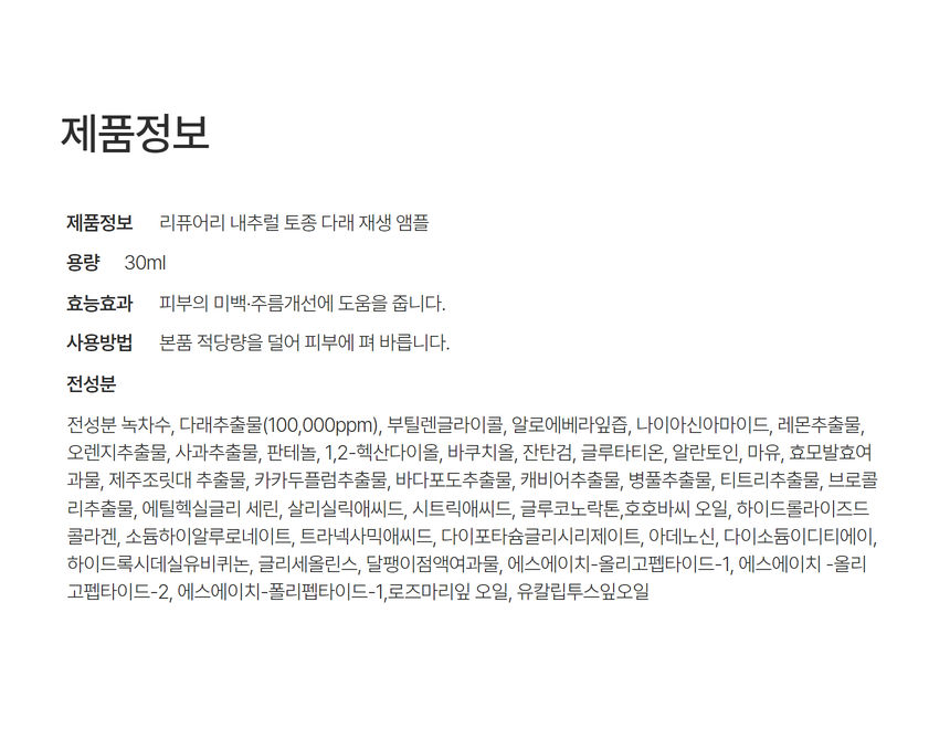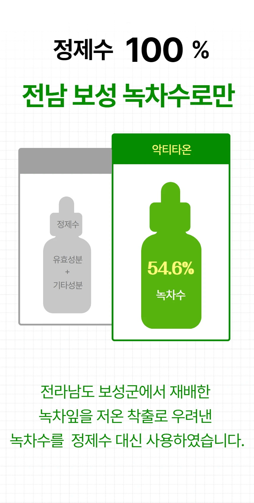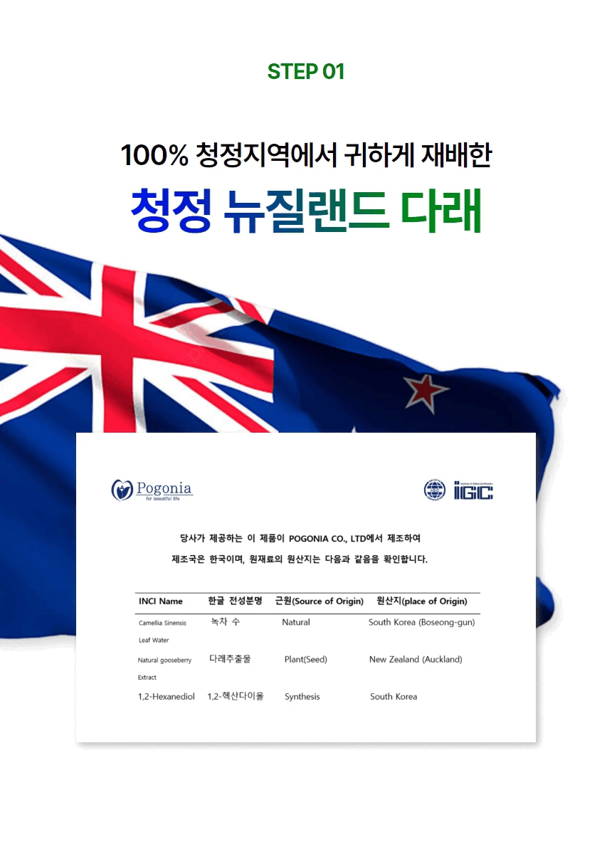 - 0% Purified Water: Replaced with Boseong green tea water from Jeollanam-do for enhanced hydration and antioxidant benefits.